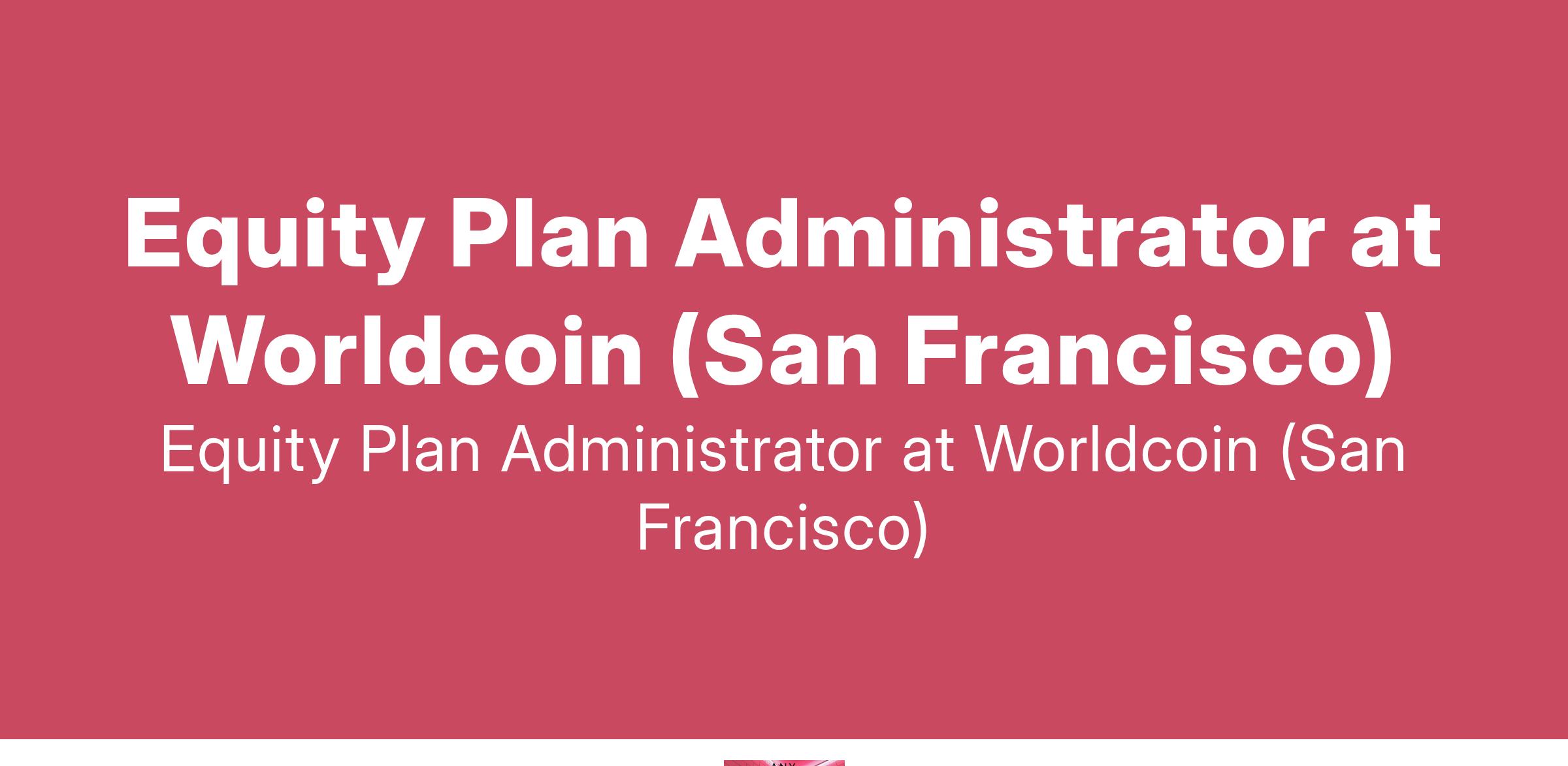 Equity Plan Administrator at Worldcoin (San Francisco)