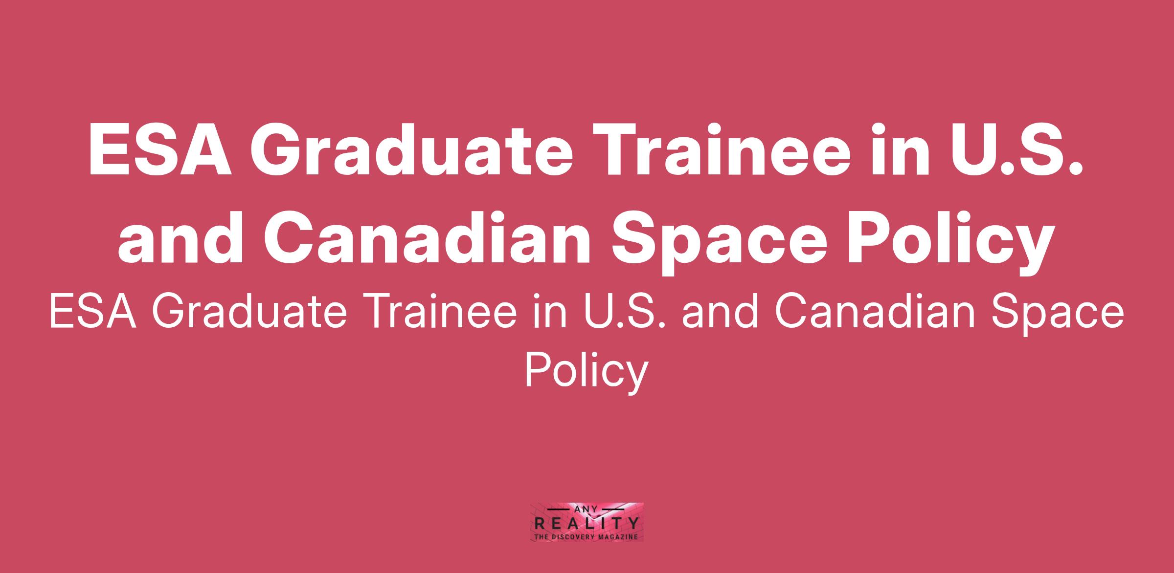 ESA Graduate Trainee in U.S. and Canadian Space Policy