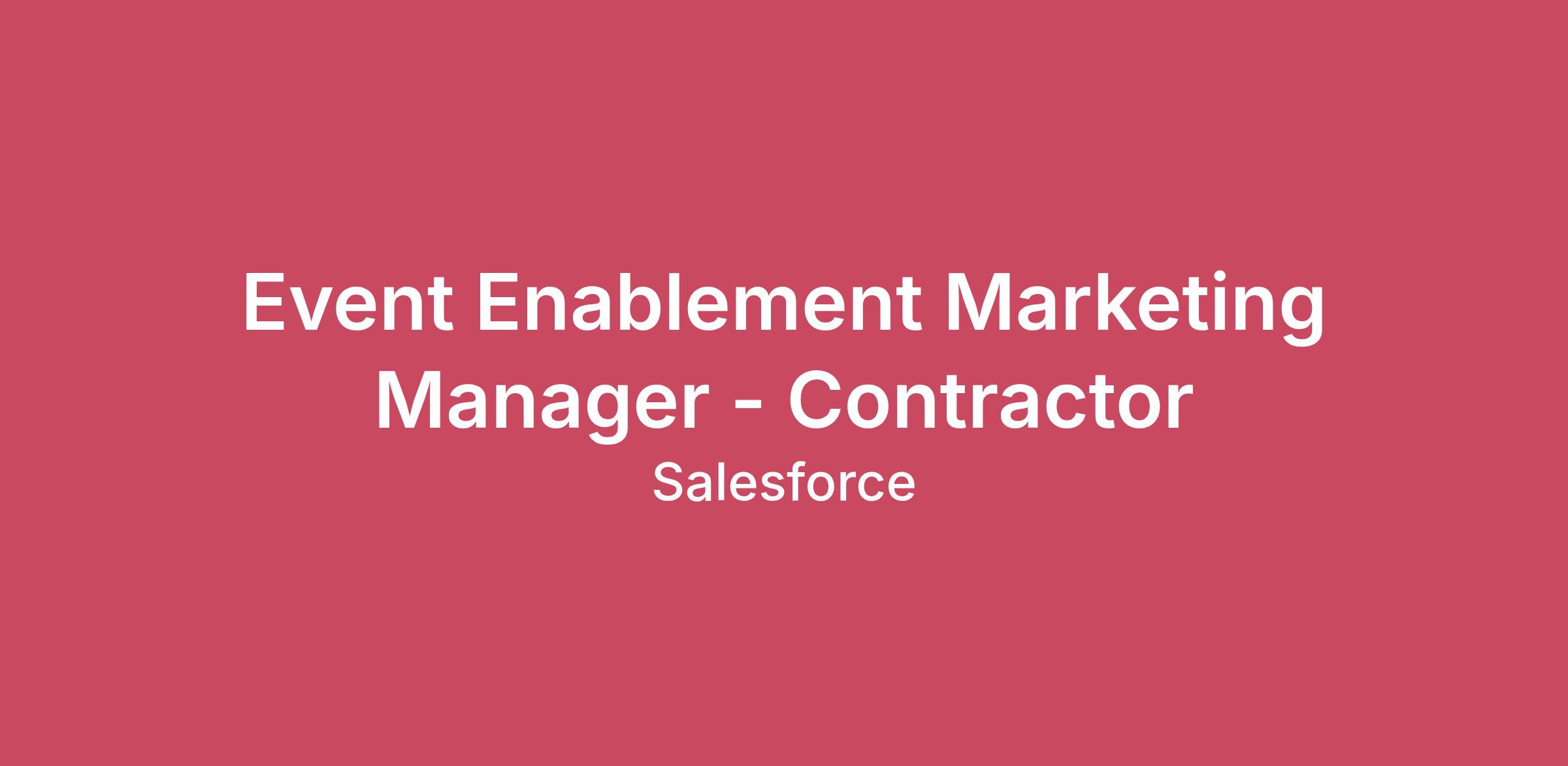 To get the best candidate experience, please consider applying for a maximum of 3 roles within 12 months to ensure you are not duplicating efforts.Job CategoryMarketing & CommunicationsJob DetailsAbout SalesforceSalesforce is the #1 AI CRM, where humans with agents drive customer success together. Here, ambition meets action. Tech meets trust. And innovation isn’t a buzzword — it’s a way of life. The world of work as we know it is changing and we're looking for Trailblazers who are passionate about bettering business and the world through AI, driving innovation, and keeping Salesforce's core values at the heart of it all.Ready to level-up your career at the company leading workforce transformation in the agentic era? You’re in the right place! Agentforce is the future of AI, and you are the future of Salesforce.CONTRACTOR ROLE FOR 6 MONTHSOverview of the RoleWe are seeking an experienced and dynamic individual to join our team in the role of Event Enablement Marketing Manager. This role is focused on engaging and enabling our sales team and larger internal audience to leverage the impact of the Strategic Events portfolio to engage their customers, introduce innovative solutions, and drive business forward. The role is responsible for supporting internal marketing campaigns for events, and crafting cross-functional communications plans aligned with, including but not limited to Demand Generation, Field Marketing, Sales Programs, Global Enablement, and Executive Communications. This role also involves delivering enablement analytics and reporting and actively contributing to the communication strategy for our proprietary event portfolio.ResponsibilitiesDevelop comprehensive comms and internal marketing plans for Strategic EventsAlign plans with the broader event marketing campaign to ensure consistency and effectiveness.Support development of video content to showcase event impact, including sizzle videos, seller testimonials, and weekly internal podcast series for Dreamforce.Support push notification strategy - from segmentation to copywriting and aligning with key stakeholders for approvals.Drive channel strategy, constantly pursuing new avenues to amplify messaging and effectively reach target audience (primarily, the Sales organization).Create and maintain a communication tracking tool (i.e., the tick tock), coordinating calendars with cross-functional partners and ensuring timely deployment of comms.Ensure seamless collaboration and communication across teams to deliver cohesive, timely messaging.Lead cross-functional workstreams by event to ensure appropriate amplification of messaging across the organization.Support the wider Enablement team in the creation and upkeep of enablement tools and resources, including presentations, call scripts, email templates, FAQs, codes, etc.Write compelling and effective copy for various mediums, including but not limited to Slack posts, emails, resources, exec scripts, and call scripts.Support ideation of new content ideas to creatively engage target audience.Act as liaison to the Creative team; drive the briefing process and ensure delivery of creative assets.Support the analytics and reporting strategy for enablement communications.Provide insights and recommendations for continuous improvement based on performance data.Learn seller reporting tools, goals, and language to ensure an effective enablement campaign, ultimately helping our sellers drive business with events.Required Qualifications5+ years of experience in events, marketing, or campaigns with a focus on communication strategy development and executionExcellent storytelling, written and verbal communication skills. Strong project management skills, with the ability to coordinate across diverse teams, deliver results, and prioritize. Strong copywriting, slide-building, and presentation skills, with a solid ability to present to a variety of stakeholders across all levels. Familiarity with video marketing, from content capture to development.Analytical mindset with the ability to derive insights from data.Familiarity with enablement tools and resources.Ability to thrive in a fast-paced, dynamic environmentPreferred QualificationsPrevious experience in B2B or technology-driven companies is advantageous.Experience with Google Analytics and/or Slack Analytics a plusIf you are a strategic thinker with a passion for crafting impactful communications and driving enablement success, we invite you to apply for this exciting opportunity to support our Event Enablement Marketing efforts! *LI-YUnleash Your PotentialWhen you join Salesforce, you’ll be limitless in all areas of your life. Our benefits and resources support you to find balance and be your best, and our AI agents accelerate your impact so you can do your best. Together, we’ll bring the power of Agentforce to organizations of all sizes and deliver amazing experiences that customers love. Apply today to not only shape the future — but to redefine what’s possible — for yourself, for AI, and the world.AccommodationsIf you need a reasonable accommodation during the application or the recruiting process, please submit a request via this Accommodations Request Form.Please note that Salesforce uses artificial intelligence (AI) tools to help our recruiters assess and evaluate candidates’ resumes and qualifications throughout the recruiting process. Humans will always make any candidate selection and hiring decisions. Please see our Candidate Privacy Statement for more information about how we use your personal data and your rights, including with regard to use of AI tools and opt out options.Posting StatementSalesforce is an equal opportunity employer and maintains a policy of non-discrimination with all employees and applicants for employment. What does that mean exactly? It means that at Salesforce, we believe in equality for all. And we believe we can lead the path to equality in part by creating a workplace that’s inclu