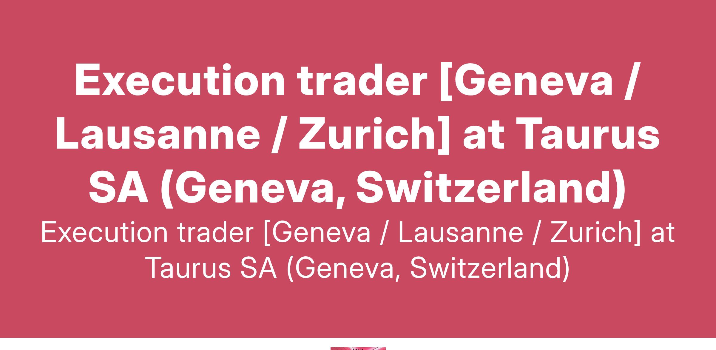 Execution trader [Geneva / Lausanne / Zurich] at Taurus SA (Geneva, Switzerland)