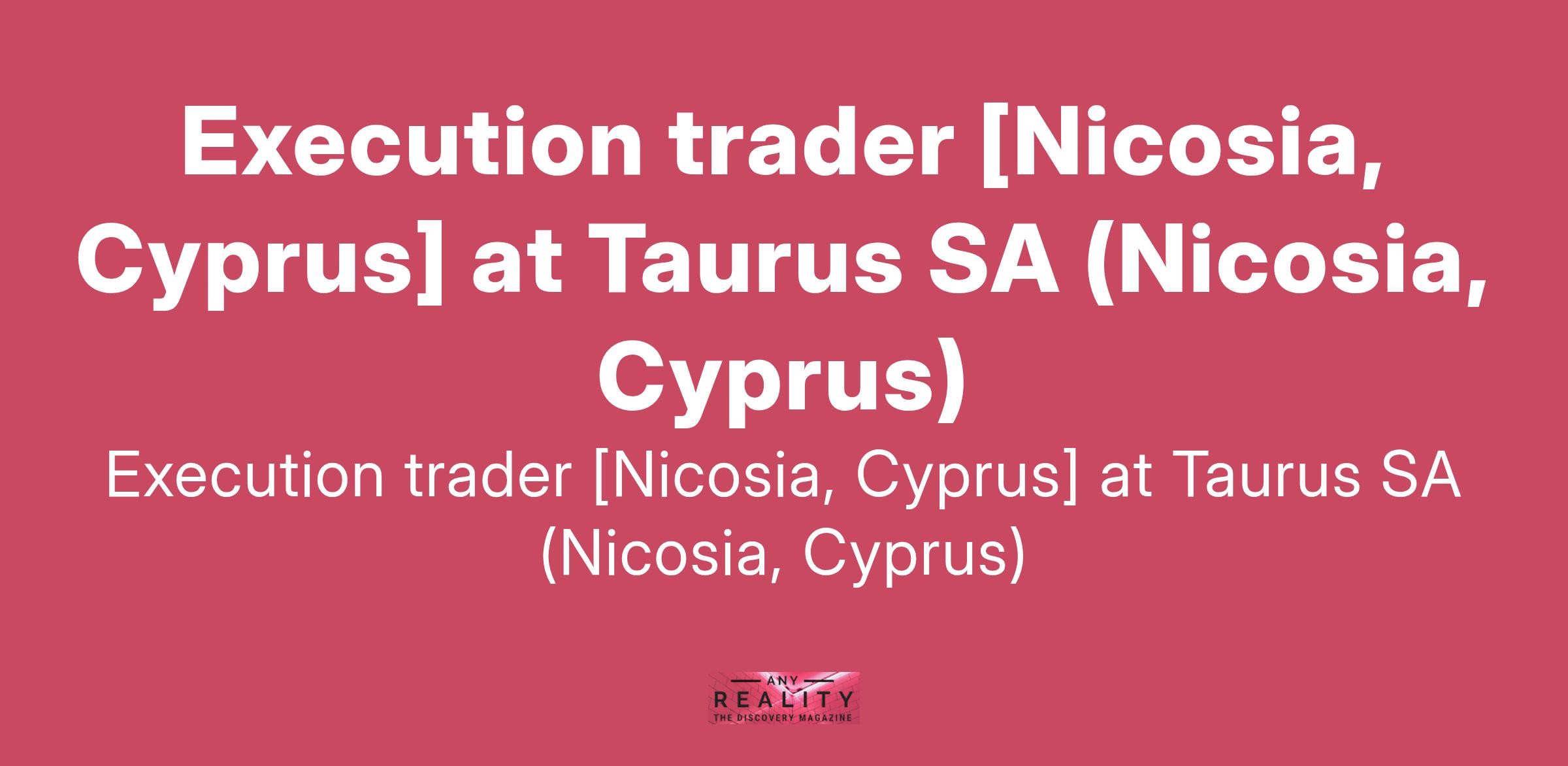 Execution trader [Nicosia, Cyprus] at Taurus SA (Nicosia, Cyprus)