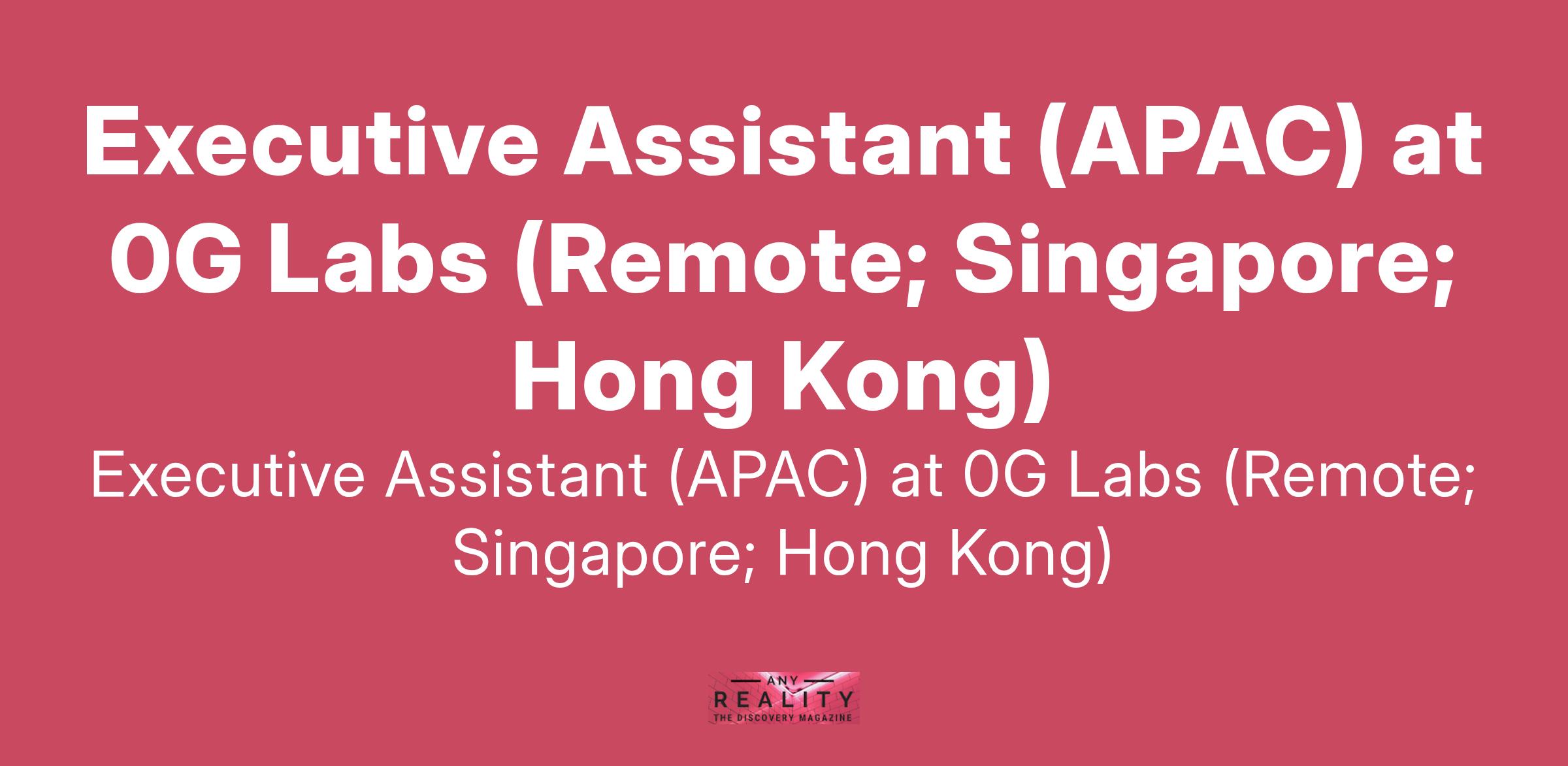 Executive Assistant (APAC) at 0G Labs (Remote; Singapore; Hong Kong)