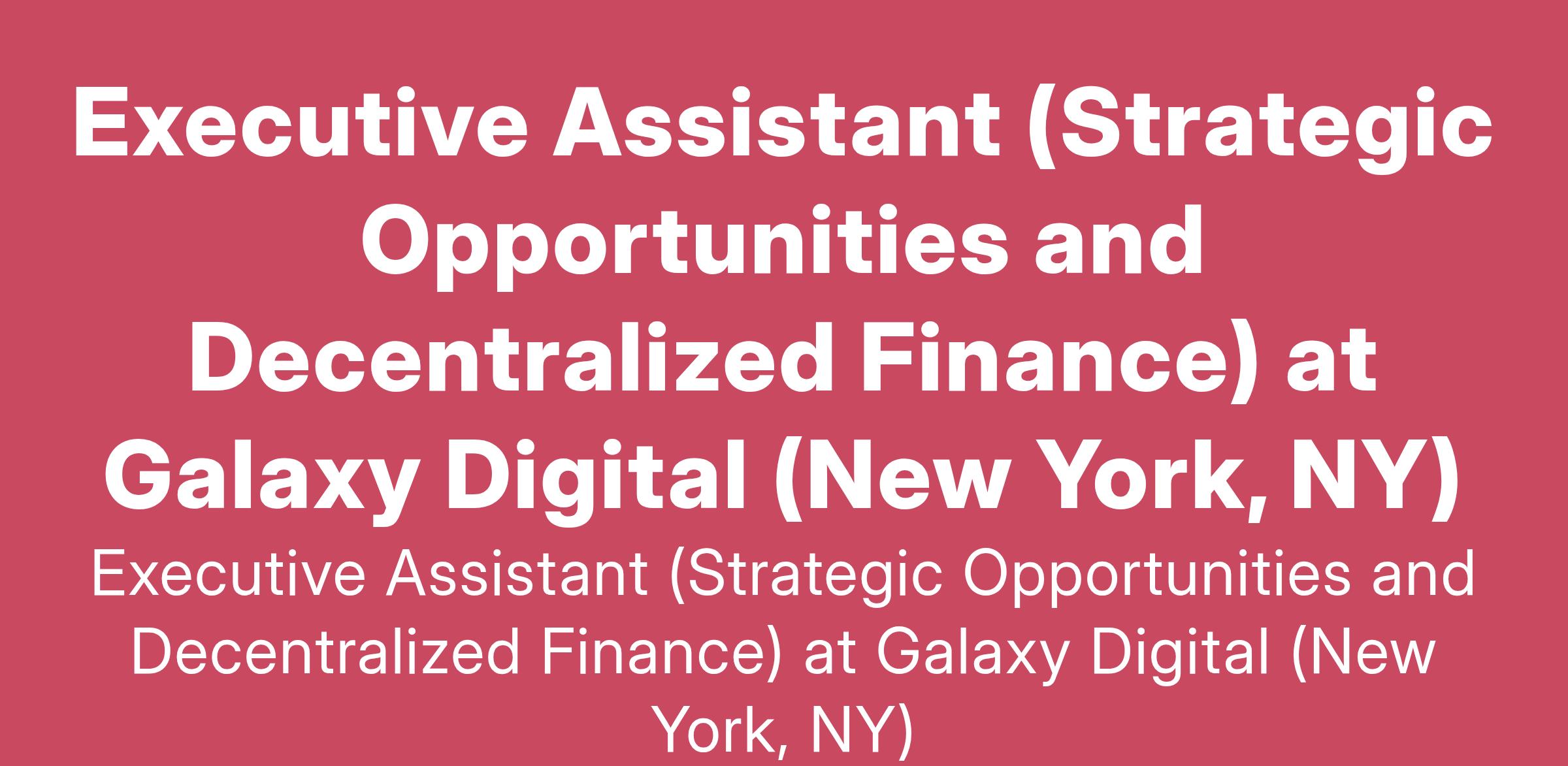 Executive Assistant (Strategic Opportunities and Decentralized Finance) at Galaxy Digital (New York, NY)
