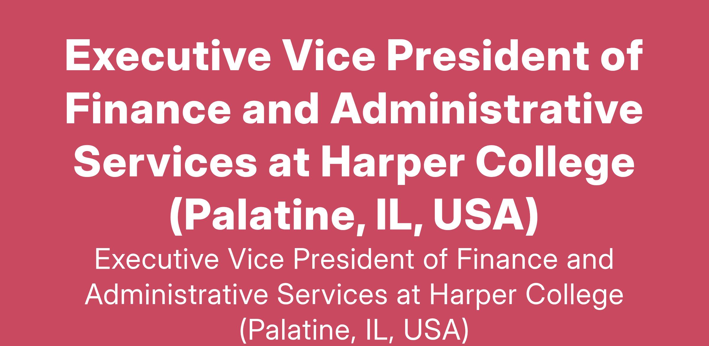 Executive Vice President of Finance and Administrative Services at Harper College (Palatine, IL, USA)
