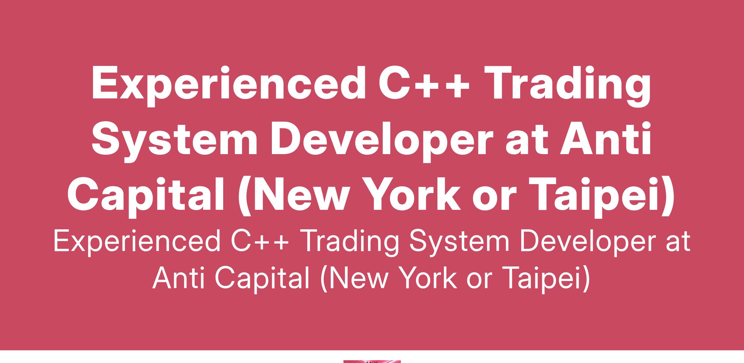 Experienced C++ Trading System Developer at Anti Capital (New York or Taipei)