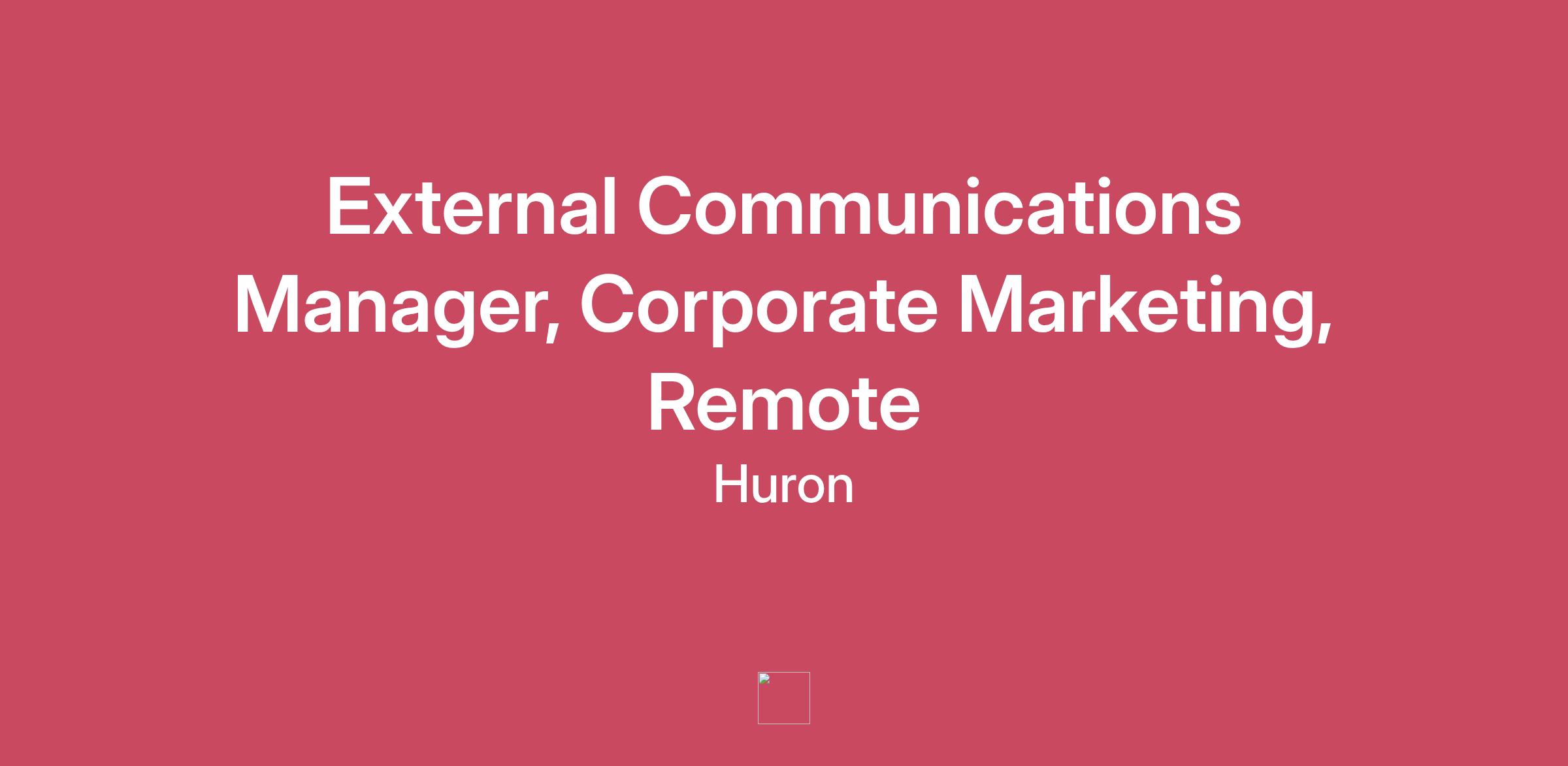 Huron is redefining what a global consulting organization can be. Advancing new ideas every day to build even stronger clients, individuals and communities. We’re helping our clients find new ways to drive growth, enhance business performance and sustain leadership in the markets they serve. And, we’re developing strategies and implementing solutions that enable the transformative change they need to own their future.As a member of the Huron corporate team, you’ll help to evolve our business model to stay ahead of market forces, industry trends and client needs. Our accounting, finance, human resources, IT, legal, marketing and facilities management professionals work collaboratively to support Huron’s collective strategies and enable real transformation to produce sustainable business results.Join our team and create your future.The External Communications Manager develops and executes integrated PR and communications programs that strengthen Huron’s reputation, amplify thought leadership, and support business growth. In this role, the Manager is responsible for representing select industry sectors, driving awareness of Huron’s sector leaders and expertise, and shaping external narratives that elevate their market presence. The Manager also contributes to the overall perception of Huron as a business, working closely with the Marketing and Communications leadership. This role manages media relations, executive visibility, and external storytelling, balancing strategic planning with hands-on execution to deliver high-quality results.Key ResponsibilitiesMedia Relations & Story DevelopmentLead pitch development, outreach, and briefing for priority announcements, research, and thought leadership.Build and maintain relationships with key reporters, outlets, and industry media; secure high-quality coverage aligned to strategic priorities.Draft and refine press releases, media statements, talking points, and related materials.Develop proactive strategies to drive awareness of Huron’s sector expertise in collaboration with marketing and social media, through tentpole media initiatives.Executive Visibility & Thought LeadershipPartner with leaders and subject matter experts to translate insights into externally facing content (e.g., bylines, expert commentary).Support executive visibility efforts, including speaking opportunities, award submissions, and media preparation.Reputation & Issues SupportSupport issues or crisis-related communications, including message development, holding statements, and cross-functional alignment.Ensure consistent narrative, tone, and brand voice across all external touchpoints.Measurement & ReportingTrack communications performance using KPIs such as coverage quality, share of voice, message pull-through, sentiment, and digital impact.Prepare summaries and insights for marketing and business leadership to inform decisions and demonstrate outcomes.Agency & Vendor ManagementPartner with external communications colleagues to manage day-to-day work with PR agency partners.Provide direction, review deliverables, and evaluate agency performance relative to objectives and KPIs.Governance & AlignmentEnsure alignment across Communications, Marketing (including brand), and Content teams.Maintain consistent messaging, narrative structure, and editorial standards across all channels.QualificationsBachelor’s degree in Communications, Journalism, Public Relations, Marketing, or related field.6+ years of external or corporate communications experience in B2B, consulting, professional services, or agency environments.Demonstrated media relations success and experience collaborating with senior stakeholders and external agencies.Industry and media experience in industrials/manufacturing, financial services, energy a plus.Core Skills & CompetenciesStrategic & Execution Balance: Able to set communication plans and contribute directly to writing, pitching, and execution.Media Relations Excellence: Skilled in securing high-quality media coverage and shaping compelling storylines.Executive Communication: Strong writer with the ability to simplify complex topics and craft executive-ready materials.Data-Driven Measurement: Comfortable interpreting communications KPIs and providing actionable insights.Collaboration & Influence: Works effectively across marketing, brand, legal, leadership teams, and agency partners.Innovation & Change Management: Adopts emerging tools (including AI-assisted writing, monitoring platforms) to improve quality and efficiency.Project & Vendor Management: Skilled at managing agencies, vendors, and cross-functional project timelines.#LI-EA1#LI-RemoteThe estimated base salary range for this job is $105,000-$145,000. The range represents a good faith estimate of the range that Huron reasonably expects to pay for this job at the time of the job posting. The actual salary paid to an individual will vary based on multiple factors, including but not limited to specific skills or certifications, years of experience, market changes, and required travel. This job is also eligible to participate in Huron’s annual incentive compensation program, which reflects Huron’s pay for performance philosophy. Inclusive of annual incentive compensation opportunity, the total estimated compensation range for this job is $126,000-$174,000. The job is also eligible to participate in Huron’s benefit plans which include medical, dental and vision coverage and other wellness programs. The salary range information provided is in accordance with applicable state and local laws regarding salary transparency that are currently in effect and may be implemented in the future.Position LevelManagerCountryUnited States of America