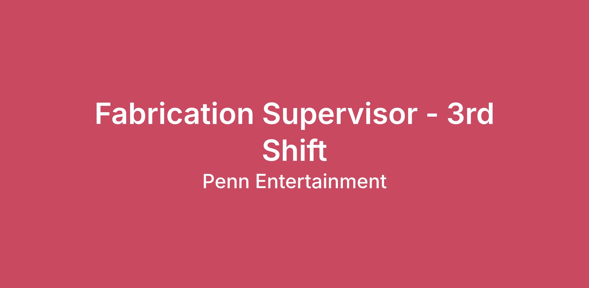 Fabrication Supervisor - 3rd Shift