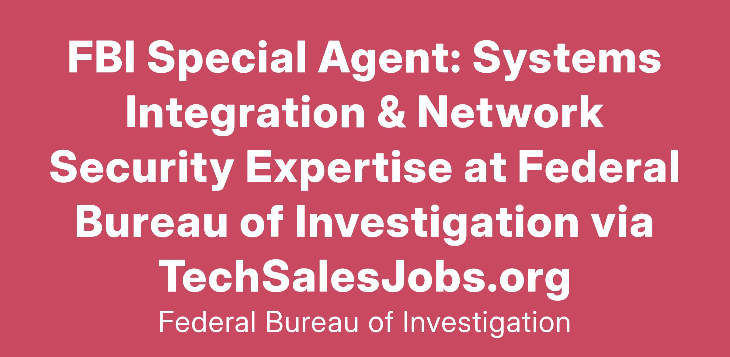 FBI Special Agent: Systems Integration & Network Security Expertise at Federal Bureau of Investigation via TechSalesJobs.org