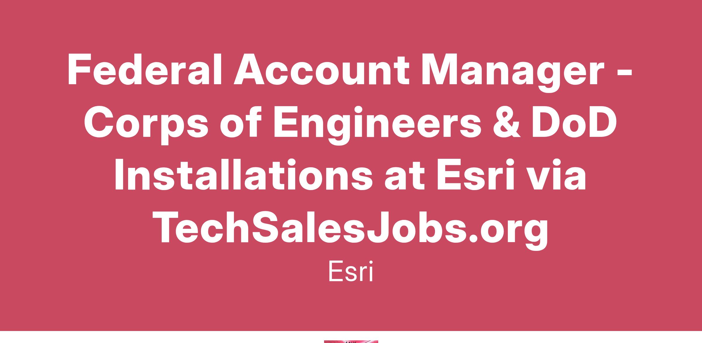 We invite you to bring your experience in, passion for, defense civil works, installation management, and applying state-of-the-art geospatial technology to Esri’s national government account team. We’re looking for an individual who is customer-oriented, collaborative team player who enjoys identifying and implementing business and technical strategies to help customers solve problems and meet their mission. You’ll work closely with a team that focuses on new and existing US Army Corps of Engineers and US Army Installation customers to optimize and expand their adoption of Esri technology, identify new areas of growth, and deliver expertise that aligned with customers’ missions.