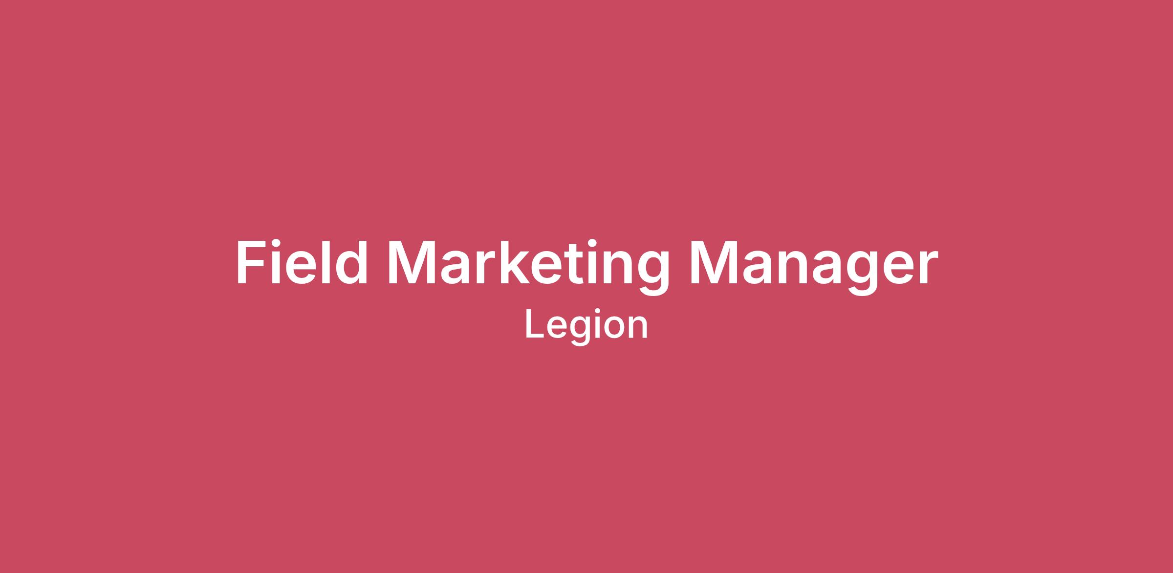 Field Marketing Manager Remote, United States Job Summary We’re looking for a dynamic Field Marketing Manager who loves turning big ideas into memorable experiences that drive real business impact. In this role, you’ll lead the development and execution of creative, integrated field marketing campaigns that build brand excitement, generate demand, and accelerate pipeline across key regions. You’ll bring campaigns to life through a mix of digital programs, executive events, trade shows, customer experiences, and targeted account-based initiatives. Working closely with sales and cross-functional teams, you’ll design programs that engage the right people, spark meaningful conversations, and move deals forward. If you thrive in a fast-paced environment, enjoy blending strategy with creativity, and love seeing your work directly influence revenue, this role is for you. Key Responsibilities Bring Campaigns to LifeDesign and execute integrated field marketing campaigns that generate buzz, build brand awareness, and drive pipeline growth. Create Memorable ExperiencesPlan and deliver standout events—including trade shows, executive forums, customer gatherings, roadshows, and VIP experiences—that connect prospects and customers with our brand in meaningful ways. Power Account-Based EngagementPartner with sales and digital to identify high-value target accounts and build tailored marketing programs that engage buying groups and accelerate deal momentum. Connect Marketing to RevenueAlign closely with Sales, SDRs, Product Marketing, and Customer Success to ensure campaigns and events support pipeline generation, account engagement, and deal progression. Tell Great StoriesCraft engaging messaging and promotional content across channels—including email, social media, landing pages, and event communications—to drive audience interest and participation. Own the Details, Deliver the ImpactManage vendors, agencies, and event partners to deliver seamless experiences while keeping programs on time and on budget. Measure What MattersTrack campaign and event performance, analyze results, and continuously optimize programs to increase engagement, pipeline, and ROI. Represent the BrandServe as a brand champion at key events and industry moments, helping create authentic connections with prospects, partners, and customers. Keep InnovatingBring fresh ideas to the table—new event concepts, creative campaign approaches, and innovative engagement strategies that elevate field marketing impact. Stay Smart & ResponsibleEnsure all programs align with company policies and industry standards while proactively managing risks associated with events and campaigns. Qualifications: Education: Bachelor’s degree in Marketing, Business Administration, Communications, or a related field. Experience: Minimum of 5-7 years of experience in field marketing, event management, or related roles. Skills: Proven ability to manage and execute events of all scales. Significant attention to details Excellent project management and organizational abilities. Dynamic communicator with great oral and written skills. Strong negotiation and vendor management capabilities. Proficiency in data analysis and reporting tools. Creative problem-solving skills and ability to adapt to changing circumstances Knowledge: In-depth understanding of marketing principles, campaign execution and event management best practices. Experience with SFDC, Marketo Travel: Willingness to travel up to 40% of the time, including occasional weekends. COMPENSATION & BENEFITS Salary Range: Base Salary Range $70,000 - $80,000 + Bonus + Stock Equity At Legion, we offer competitive compensation and benefits packages to all employees. As a fully remote employer, pay for positions is determined using local, national, and industry-specific survey data. Our posted salary range is done so in good faith based on national data and may be refined for a candidate's region/town/cost of living. We strive to make competitive offers allowing employees room for future growth. Salaries will be based on the applicant’s location, level of experience, education, and specialized knowledge and skills. Additionally, we consider the external market rate, the amount we have budgeted internally, and internal equity within the company for the same position. Benefits include, but are not limited to: $0 monthly premium and other flexible medical, dental, and vision plans effective on the first day of employment 401k plan Discretionary Paid Time Off and Paid Holidays Parental Leave Equity Monthly Wellness Reimbursement Monthly Lunch on Legion ABOUT LEGION Join Legion's mission to turn hourly jobs into good jobs. We're a remote, mission-driven team seeking exceptional talent to propel this vision. Embrace a culture that's collaborative, fast-paced, and entrepreneurial. With us, you'll grow your skills, work closely with experienced executives, and contribute significantly to our mission.Our award-winning AI-native workforce management platform is intelligent, automated, and employee-centric and has proven to deliver 13x ROI. We help labor-intensive organizations maximize labor efficiency and employee engagement simultaneously. Legion has earned recognition for its innovation, including spots on the Inc. 5000 list, Forbes’ Next Billion Dollar Startups, and awards for our AI technology. Backed by leading investors such as Norwest Venture Partners, Stripes, First Round Capital, XYZ Ventures, Webb Investment Network, Workday Ventures, and NTT DOCOMO Ventures, we're making real change. If you're ready to make an impact and grow your career, Legion is where you belong. Join us in making hourly work rewarding and fulfilling. BACKGROUND AND OPPORTUNITY There are almost 75 million hourly workers in the United States, representing more than half of the entire workforce. Historically, managing hourly employees has been difficult due to high attrition (average of 60%) and high replacement costs (a
