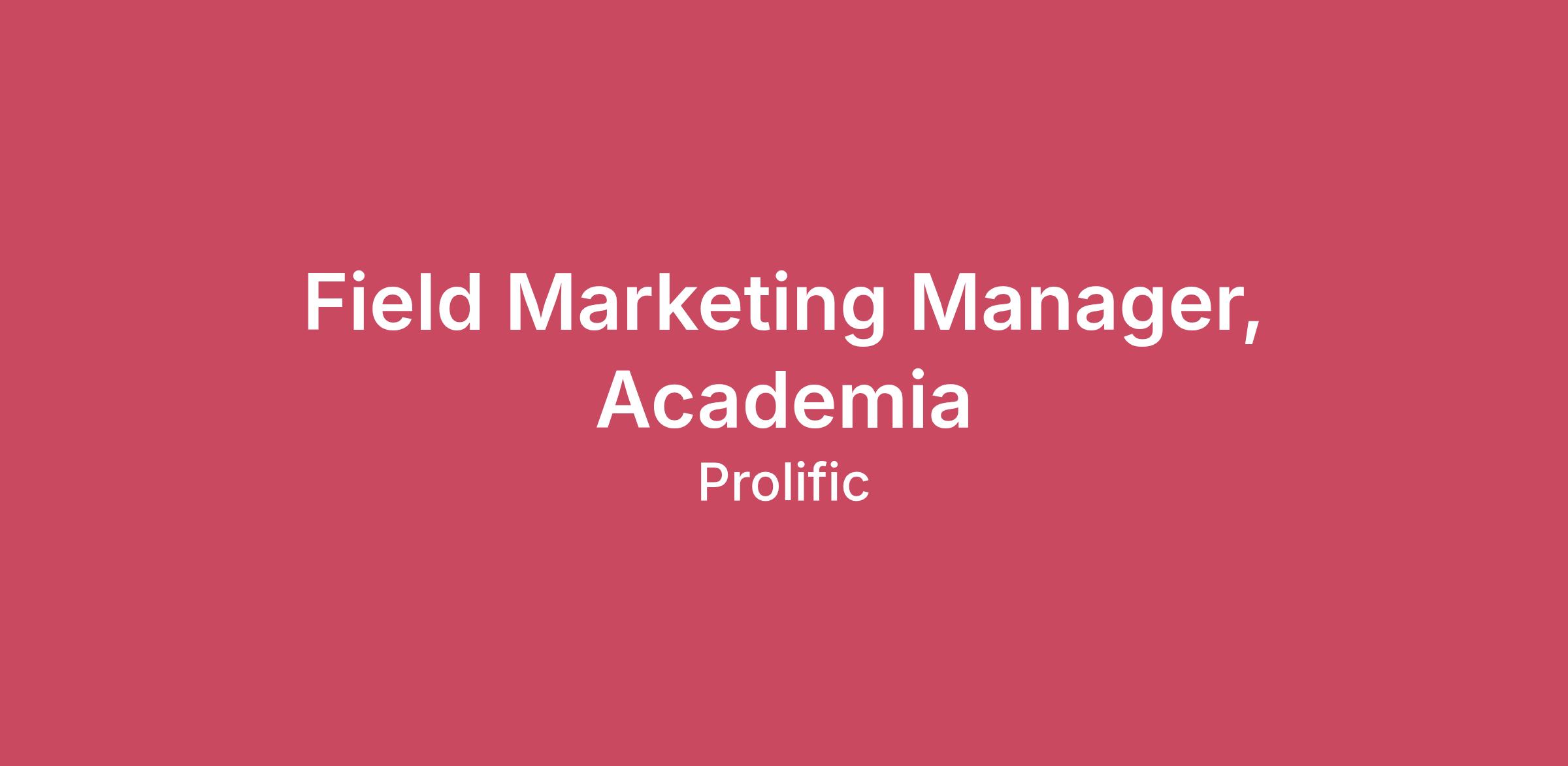 Field Marketing Manager, Academia Prolific At Prolific, our marketplace is rooted in academia, and that commitment runs deep. Alongside our work to accelerate the future of AI, we’re continuing to redefine how the world conducts academic research. What started as a research-driven idea has evolved into the world’s most trusted infrastructure for human data. Today, tens of thousands of researchers from top universities across the globe rely on Prolific to power their work, from peer-reviewed studies to the next generation of technological breakthroughs. We're doubling down on our mission to serve the academic community, deepening relationships, building smarter tools, and making high-quality human data more accessible than ever. The role We are looking for an Field Marketing Manager to build and activate Prolific's presence within the academic research community. This role sits at the intersection of marketing strategy and deep academic credibility — you'll own how Prolific shows up across universities, research labs, and academic conferences, driving awareness and pipeline within our most strategically important segment.You'll work closely with our GTM Research Team to ensure every campaign, piece of content, and event resonates authentically with academic audiences, helping position Prolific as the trusted partner for researchers worldwide. What you’ll be doing in the role Develop and execute a field marketing strategy targeting universities, research labs, and academic conferences Partner closely with the GTM Research Team to ensure campaigns are credible, relevant, and resonate with academic audiences Own academic event sponsorships, speaking submissions, and conference presence - from strategy through to on-the-ground execution Build and grow a community of academic advocates and research champions, fostering peer-to-peer connections, facilitating knowledge sharing, and creating spaces - online and offline - where researchers engage meaningfully with Prolific Build, nurture relationships and marketing programs with academic associations, ethics boards, and research networks to strengthen Prolific's standing in the community Drive academic pipeline in close coordination with named academic accounts, working across GTM to connect marketing activity to revenue outcomes Manage academic-specific content including whitepapers, research reports, and webinars that genuinely serve researcher needs Track and report on academic segment metrics including reach, engagement, and pipeline influence, ensuring marketing investment translates into measurable impact What you’ll bring to the role Proven experience in field marketing, academic marketing, or a closely related B2B marketing role Track record of developing and executing marketing programmes that drive pipeline, not just awareness Experience owning event strategy and conference presence, including sponsorships and speaking programmes Experience working alongside a sales or account management teams Strong cross-functional collaborator — comfortable working with sales, GTM, content, and research stakeholders Data-driven mindset with the ability to define, track, and optimise against meaningful metrics Excellent written and verbal communication skills, with the ability to adapt tone and content for sophisticated academic audiences Why Prolific is a great place to work We've built a unique platform that connects researchers and companies with a global pool of participants, enabling the collection of high-quality, ethically sourced human behavioral data and feedback. This data is the cornerstone of developing more accurate, nuanced, and aligned AI systems. We believe that the next leap in AI capabilities won't come solely from scaling existing models but from integrating diverse human perspectives and behaviors into AI development. By providing this crucial human data infrastructure, Prolific is positioning itself at the forefront of the next wave of AI innovation—one that reflects the breadth and the best of humanity. Working for us will place you at the forefront of AI innovation, providing access to our unique human data platform and opportunities for groundbreaking research. Join us to enjoy a competitive salary, benefits, and remote working within our impactful, mission-driven culture. Links to more information on Prolific Benefits External Handbook Website Youtube Privacy Statement By submitting your application, you agree that Prolific may collect your personal data for recruiting and global organization planning. Prolific's Candidate Privacy Notice explains what personal information Prolific may process, where Prolific may process your personal information, its purposes for processing your personal information, and the rights you can exercise over Prolific use of your personal information.