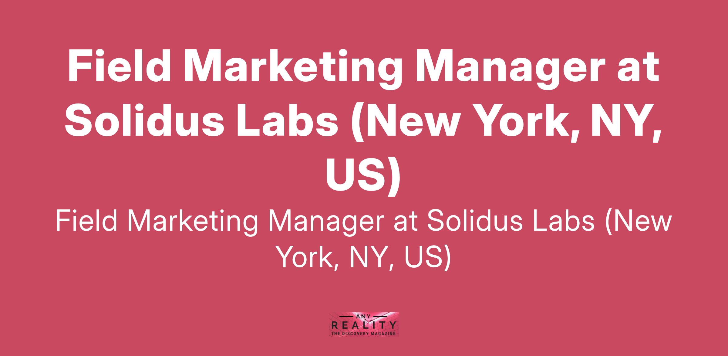 Field Marketing Manager at Solidus Labs (New York, NY, US)