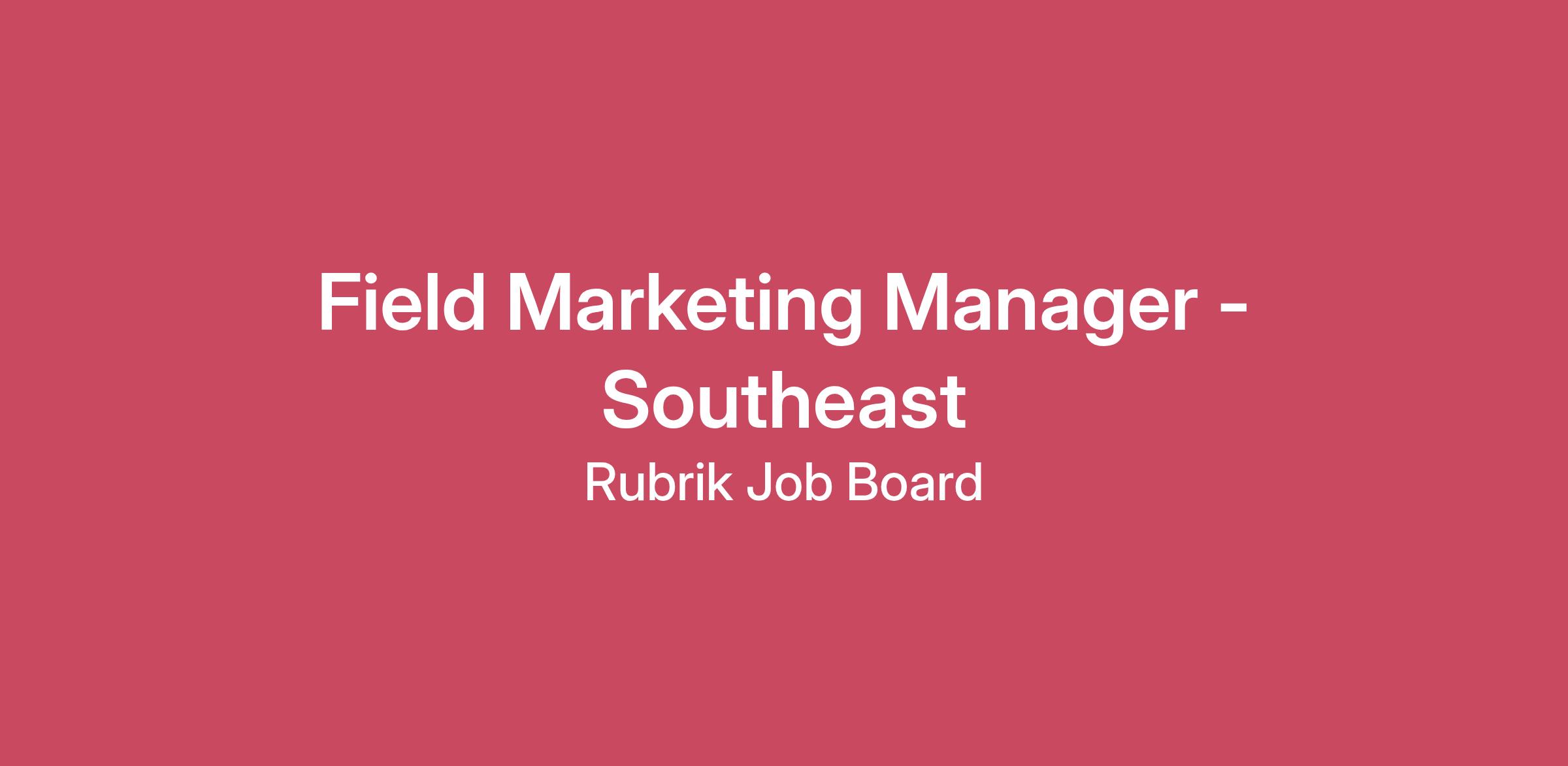 About Team & About Role: Rubrik’s Marketing Team is growing and we’re looking for individuals to join us at one of the most pivotal moments in our journey. Our team breaks boundaries and challenges the status quo, innovating along the way. We embrace a culture of opportunity and empowerment, allowing team members to take their best ideas and see them to fruition, while constantly exploring one-of-a-kind strategies. Come be part of a team bringing a fresh perspective to data security. Join us and let’s be unstoppable, together. We are looking for a talented individual to join our team as a Field Marketing Manager. In this role, you will be an integral part of the Marketing team, overseeing the success of all demand generation initiatives and marketing events in the Southeast region (AL, FL, MS, TN). What you’ll do: Develop strategic and effective regional marketing plans to build pipeline and drive revenue goals Work with Marketing and Sales teams to create and execute regional marketing programs tailored to local markets and target accounts. These include in-person and virtual seminars, webinars, executive engagements, third party conferences, networking events, meeting maker programs, etc. Partner with various cross-functional teams to deliver a comprehensive portfolio of marketing programs to help meet and exceed marketing targets Partner and execute campaigns and events on strategic corporate industry initiatives, such as healthcare Demonstrated experience planning and executing field marketing programs in support of healthcare accounts, with an understanding of healthcare buyer personas, compliance considerations, and regional market dynamics. Build and maintain relationships with channel partners and key go-to-market ecosystem partners to strengthen our value propositions, create broader market awareness and generate new business opportunities Track lead flow to ensure the appropriate Sales channels are following up with event attendees and campaign responders in a timely manner Manage to key metrics and monitor KPIs in Salesforce and Tableau Manage quarterly regional field marketing budget Analyze program results and business contribution through data-driven reporting and analytics Communicate with key stakeholders by creating a high level of awareness, excitement and adoption of marketing programs Support all corporate initiatives, give actionable feedback, share best practices and serve as advocate and marketing information source for the region Experience you’ll need: 7+ years of experience in relevant field or event marketing roles within a fast-paced, high-growth technology company Strong Field and Channel Marketing expertise, personal drive, a history of career growth Ability to create, manage, execute multiple marketing campaigns concurrently, and quickly pivot as needs change Ability to effectively communicate regional marketing plans and build buy-in with sales teams and channel Strong understanding of the IT buyer, ability to write to and create compelling events for buyer personas Strong written, oral, interpersonal and presentation skills Excellent project management, negotiation, decision-making, and strategic thinking skills with ability to make data-driven decision Ability to build trusting, collaborative relationships with peers, sales teams, distributors, resellers and customers Experience on targeted industry specific marketing, such as healthcare, is preferable Strong sense of accountability and ownership, an ability to manage your business and clearly communicate your results back to the organization Outcome driven, analytical, and have a track record of executing creative, impactful field marketing programs Experience with Marketing Automation, CRM (Salesforce.com), GSuite, Splash is preferred BS/BA degree or equivalent experience Ability to travel within territory #LI-KY1The minimum and maximum base salaries for this role are posted below; additionally, the role is eligible for bonus potential, equity and benefits. The range displayed reflects the minimum and maximum target for new hire salaries for the role based on U.S. location. Within the range, the salary offered will be determined by work location and additional factors, including job-related skills, experience, and relevant education or training.US (SF Bay Area, DC Metro, NYC) Pay Range$144,400—$216,600 USDThe minimum and maximum base salaries for this role are posted below; additionally, the role is eligible for bonus potential, equity and benefits. The range displayed reflects the minimum and maximum target for new hire salaries for the role based on U.S. location. Within the range, the salary offered will be determined by work location and additional factors, including job-related skills, experience, and relevant education or training.US2 (all other US offices/remote) Pay Range$130,000—$195,000 USDJoin Us in Securing the World's Data Rubrik (RBRK), the Security and AI Operations Company, leads at the intersection of data protection, cyber resilience, and enterprise AI acceleration. Rubrik Security Cloud delivers complete cyber resilience by securing, monitoring, and recovering data, identities, and workloads across clouds. Rubrik Agent Cloud accelerates trusted AI agent deployments at scale by monitoring and auditing agentic actions, enforcing real-time guardrails, fine-tuning for accuracy and undoing agentic mistakes. Linkedin | X (formerly Twitter) | Instagram | Rubrik.com Inclusion @ Rubrik At Rubrik, we are dedicated to fostering a culture where people from all backgrounds are valued, feel they belong, and believe they can succeed. Our commitment to inclusion is at the heart of our mission to secure the world’s data. Our goal is to hire and promote the best talent, regardless of background. We continually review our hiring practices to ensure fairness and strive to create an environment where every employee has equal access to opportunities for growth and excellence. We believe in