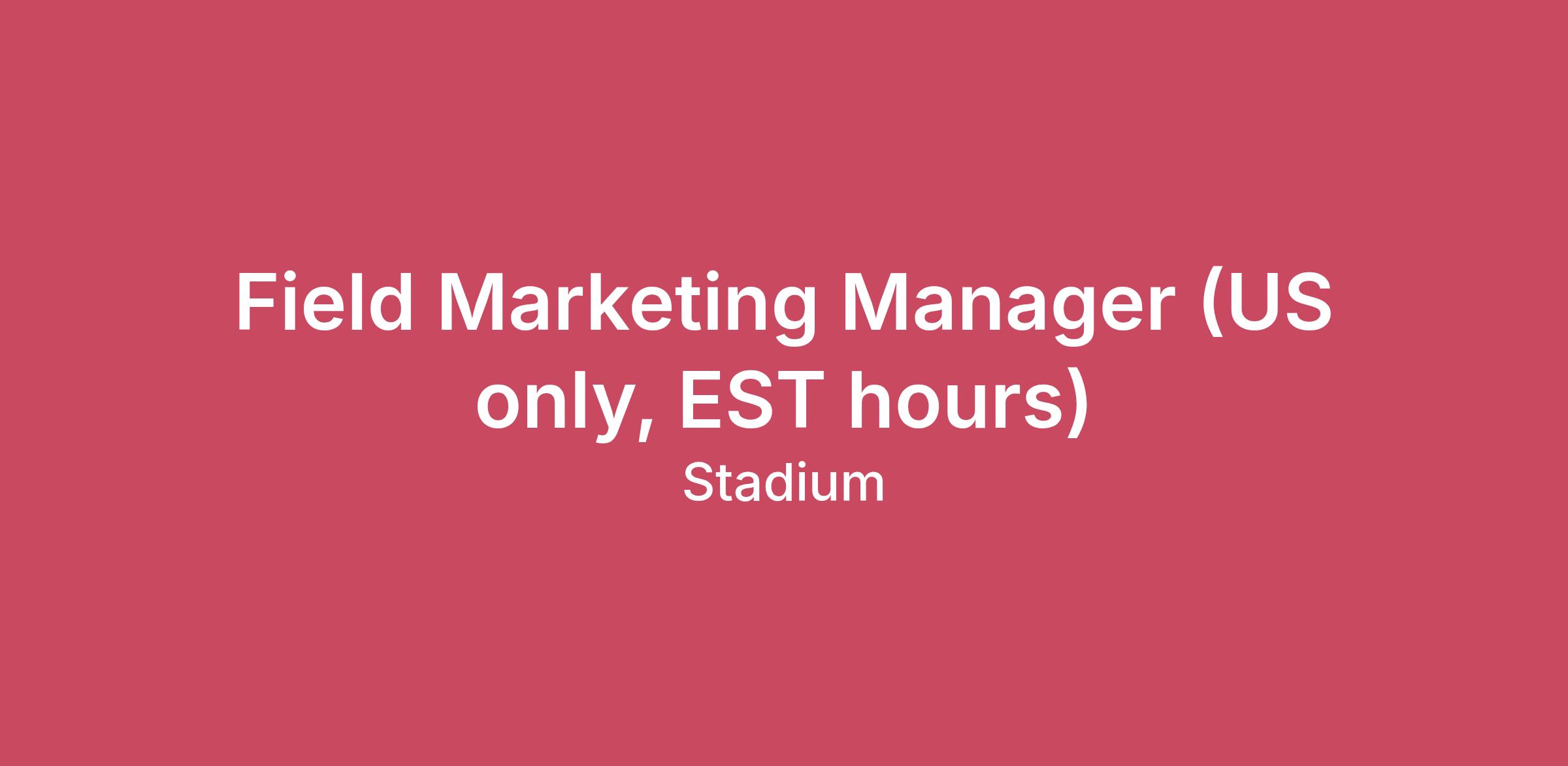 About usStadium is a single platform for global recognition, swag, and gifting. Companies use Stadium to engage employees, clients, partners, and prospects through premium swag, snack boxes, and gifting–all fulfilled locally in 170+ countries. Whether companies are recognizing 1 or 1,000+, Stadium makes it easy to deliver meaningful recognition at any scale.We’re a product-first ambitious team that’s obsessed with a united vision for taking our business to new heights. As a company, we learn fast, support each other, and focus on continuous quality and improvement for all of our customers. While our business has continually evolved over the years, our purpose has remained constant: to strengthen the bond between companies, their employees, and their customers.Job DescriptionWe’re looking for a Field Marketing Manager to lead the strategy, execution, and optimization of our in-person marketing efforts. This role will have a strong focus on B2B trade shows and conferences, as well as ownership of sponsorships and strategic prospect kits. You’ll partner closely with Sales to drive awareness, accelerate pipeline, and create standout brand moments across key accounts and markets that drive measurable results.This is a role for someone who thrives on autonomy, loves to lead, and can balance creative vision with operational excellence. Stadium is based in New York City, but this would be a fully remote position. Travel to events throughout the U.S. will be required. What You’ll Do With UsDevelop and lead our field marketing strategy, with a focus on trade shows and conferences with eventual ownership of webinars, sponsorships, and prospecting kits.Own the end-to-end event lifecycle from sourcing and evaluating opportunities to negotiating contracts, through booth/presence design and strategy, to onsite execution and post-event reporting.Partner with Sales to align on event lead qualification and post-event nurture of high-intent accounts.Manage all event logistics: booth design, interactive experience planning, vendor coordination, shipping, setup/teardown, and standout onsite presence.Design and deliver booth experiences that are not only on-brand, but strategically built to attract, engage, and convert event attendees.Create pre/post-event workflows including attendee engagement, follow-ups, and campaign integration.Measure ROI on events, kits, and sponsorships – tracking sourced/influenced pipeline and engagement metricsBuild and maintain scalable playbooks for future field initiativesServe as a product advocate at events – understanding core use cases and representing the platform alongside SalesDesign and manage high-touch prospect kits that help convert late-stage accounts by showcasing the personalization and quality possible through Stadium.Partner with Design and Content to craft compelling messaging and assets for events and kits 5+ years of B2B field marketing or events experience, ideally in SaaS or techProven success running programs that directly support pipeline generation and revenue growthStrong grasp of event marketing strategy and segmented campaign executionExperience managing sponsorships, external vendors, and third-party partnershipsCreative thinker with a sharp eye for brand and detailAnalytical mindset – confident setting KPIs and measuring program performance with support of Sales and Analytics teamsExcellent communicator with strong project management and cross-functional skillsComfortable leading on-site execution and engaging with prospects in personA fun, approachable personality; easy to get along with, but driven and focusedTeam player and humble attitude.English as a first language (additional languages a plus).Nice to have:Working knowledge of HubSpot CRM.Experience running webinars.SaaS background. Fantastic company culture focused around recognizing and leveraging individual strengths for the benefit of the whole Career mobility and opportunities to work across areas of the companyFlexible hours and unlimited time off after your first 90 daysCompetitive salary, generous PTO, 401K with match, medical benefits (US only)The estimated salary range in the US for this role is between $50,000 - $85,000. Final compensation is based on factors such as the candidate's location, skills, qualifications and experience. Stadium is an equal-opportunity employer. We use E-Verify to confirm the identity and employment eligibility of all new hires. All qualified applicants will receive consideration for employment without regard to age, ancestry, color, family or medical care leave, gender identity or expression, genetic information, marital status, medical condition, national origin, physical or mental disability, political affiliation, protected veteran status, race, religion, sex (including pregnancy), sexual orientation, or any other characteristic protected by applicable laws, regulations and ordinances. If you need assistance and/or reasonable accommodation due to a disability during the application or the recruiting process, please send a request to hi@bystadium.com.