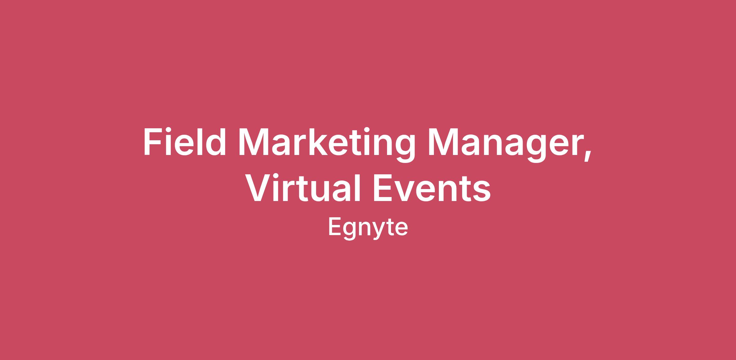 Field Marketing Manager, Virtual EventsRaleigh, NC; Draper, UT; Remote- Any allowable state Egnyte is a place where we spark opportunities for amazing people. We believe that every role has meaning, and every Egnyter should be respected. With 22,000+ customers worldwide and growing, you can make an impact by protecting their valuable data. When joining Egnyte, you’re not just landing a new career, you become part of a team of Egnyters that are doers, thinkers, and collaborators who embrace and live by our values:Invested RelationshipsFiscal PrudenceCandid Conversations ABOUT EGNYTEEgnyte is the secure multi-cloud platform for content security and governance that enables organizations to better protect and collaborate on their most valuable content. Established in 2008, Egnyte has democratized cloud content security for more than 22,000 organizations, helping customers improve data security, maintain compliance, prevent and detect ransomware threats, and boost employee productivity on any app, any cloud, anywhere. For more information, visit www.egnyte.com. THE OPPORTUNITY The Field Marketing team enables the Egnyte Sales Organization to drive pipeline and revenue through targeted, high-impact campaigns and experiences. In this role, you will be responsible for leading the team’s virtual event campaigns across the global team, creating unique experiences that engage customers and prospects in new learning opportunities. WHAT YOU’LL DO● Virtual Event Leadership (75%): Lead the strategy and orchestration of virtual event campaigns across key verticals. You will be responsible for ideation through execution, creating unique digital experiences that engage customers and prospects.● Pipeline & Revenue Accountability: Achieve pipeline and closed-won targets, helping the broader team accelerate opportunities across new logo acquisition and the install base (retention and expansion).● Field Event Support (25%): Assist in the planning and execution of Tier 1 physical events and agile, sales-requested events to support territory needs.● Strategic Partnership: Earn the role of trusted advisor on all things pipeline and revenue to Sales leadership. You will work directly with sales leaders and individuals to fully activate program success.● Cross-Functional Collaboration: Partner cross-functionally with sales, product marketing, demand generation, and other stakeholders to build and execute field marketing programs that drive pipeline and revenue within our core verticals.● Funnel Optimization: Demonstrate an understanding of the pipeline journey with the ability to adapt to business needs (net new vs. acceleration vs. retention). Continuously tune and optimize campaigns to increase conversions, reduce acquisition costs, and boost ROI.● Analysis & Reporting: Work with Marketing and Sales Ops to track, analyze, and report on campaign performance across all channels.● Budget Management: Manage field marketing budget and third-party vendors.YOUR QUALIFICATIONS● 4+ years of B2B field marketing experience, with a specific emphasis on virtual event strategies.● Experience leading campaigns, events, and field marketing for a B2B SaaS company.● Demonstrated ability to lead and execute multiple events from inception to revenue delivery.● Proven experience working dynamically across multiple teams to create unique customer experiences.● Knowledge and understanding of key technologies – SFDC, Marketo, Outreach.io, Gong, Tableau, Splash, Zoom as well as virtual event platforms.● Excellent verbal communication, organization, project management, and writing skills.● Experience building relationships with a cross-functional team and working with geographically dispersed teams and colleagues.COMPENSATION: Our compensation reflects the cost of labor across multiple U.S. geographic locations, and pay varies based on defined markets. The standard base pay range for this position across the U.S. is $86k - $120k annually. Pay varies by work location and may also be dependent on job-related skills, knowledge, and/or experience. During the interview and/or hiring process, your recruiter can share more information about the compensation package specific to the role and job location.BENEFITS: Competitive salaries and comprehensive benefits Flexible hours and generous time off (RTO, Responsible Time Off) to help support your work-life balance Paid holidays and sick time 401(k) with company match Health Savings Account (HSA) with a generous employer contribution and Flexible Spending Account (FSA) options Up to 12wks of paid Parental and 10wks Adoption Leave to help you grow your family Modern and collaborative offices located in Draper, UT; Raleigh, NC; Mountain View, CA; and Poznan, Poland Gym, cell phone, and internet reimbursement Free well-being apps such as Spring Health for Guardian are offered, as well access to our Employee Assistance Program (EAP) Perks include discounted pet insurance, electronics, theme park tickets, travel, plus more Your own Egnyte account with lifetime access HealthJoy – a benefits navigation app that lets you access your benefits and get answers to your questions all in one place One Medical virtual care, providing you with healthcare access across the country Equal Employment OpportunityEgnyte, Inc. is an Equal Opportunity Employer that does not discriminate on the basis of actual or perceived race, color, creed, religion, national origin, ancestry, citizenship status, age, sex or gender (including pregnancy, childbirth, pregnancy-related conditions, and lactation), gender identity or expression (including transgender status), sexual orientation, marital status, military service and veteran status, physical or mental disability, genetic information, or any other characteristic protected by applicable federal, state, or local laws and ordinances. Egnyte, Inc.'s management team is dedicated to this policy with respect to recruitment, hiring, placement, pro