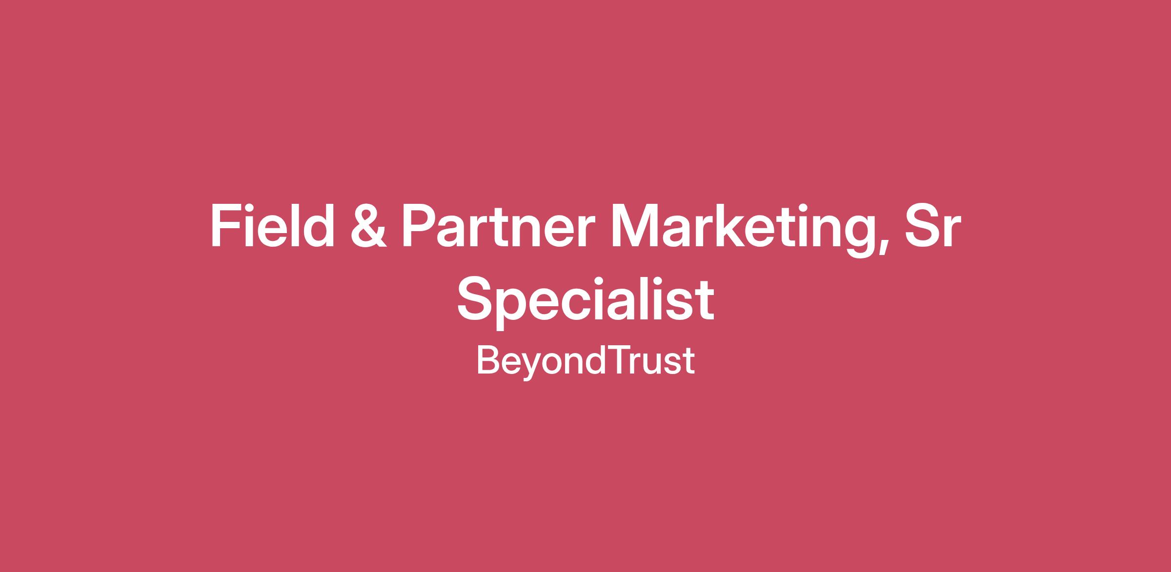 BeyondTrust is a place where you can bring your purpose to life through the work that you do, creating a safer world through our cybersecurity SaaS portfolio. Our culture of flexibility, trust, and continual learning means you will be recognized for your growth and for the impact you make on our success. You will be surrounded by people who challenge, support, and inspire you to be the best version of yourself. The Role We are seeking a detail-oriented and execution-focused Field & Partner Marketing, Sr Specialist to support pipeline growth and brand awareness across North America. In this role, you will help execute field and partner marketing programs in close collaboration with regional field marketing managers, regional sales teams, and partners—including VARs, MSSPs, and technology alliances.This role is ideal for a hands-on marketer who enjoys running events, supporting partners, and working cross-functionally in a fast-paced cybersecurity environment. You will play a key role in bringing regional and partner marketing initiatives to life and ensuring programs are executed efficiently and effectively. What You’ll Do Field & Partner Marketing Execution Support the execution of regional field and partner marketing programs, including field events, local roundtables, ABM campaigns, virtual events, and industry conferences. Work closely with regional field marketing managers and sales to support territory-based campaigns and event execution. Assist in coordinating joint marketing activities with partners, including scheduling, promotion, and follow-up. Campaign Measurement & Reporting Track campaign performance and assist with reporting on MQLs, Opps, partner engagement, and pipeline influence. Ensure accurate campaign setup, lead routing, partner attribution, and data hygiene in Salesforce and marketing automation tools. Work closely with the Sales Development Team on event and campaign follow-up to ensure appropriate lead follow-up and conversion. Support post-campaign analysis and documentation of results and learnings. Cross-Functional Execution Coordinate with demand generation, digital marketing, product marketing, and partner teams to ensure timely campaign execution. Assist with partner MDF requests, tracking, and budget documentation. Help manage logistics for events, webinars, and partner/customer activities, including vendors and timelines. What You’ll Bring 3+ years of experience in field marketing, partner marketing, demand generation, or related B2B marketing roles. Exposure to marketing for B2B SaaS, cybersecurity, or IT companies. Experience supporting multi-channel marketing campaigns and events. Familiarity with channel ecosystems (VARs, MSSPs, technology partners) is a plus. Working knowledge of Salesforce and marketing automation platforms (e.g., Eloqua). Strong written and verbal communication skills. Able to travel 10-20% to support field and industry events. Comfortable managing multiple events and deadlines simultaneously. Experience supporting co-marketing initiatives with channel or technology partners. Basic understanding of the cybersecurity market and security buyer personas. Strong organizational and project coordination skills with attention to detail. Remote Anywhere in the US- priority locations: Atlanta, Boston, Chicago, Dallas, Austin, Denver, Phoenix Better Together Diversity. Inclusion. They’re more than just words for us. They are the guiding values of how we build our teams, cultivate leaders, and create a culture where people feel connected. We take care of our employees so they can take care of our customers. Customers who come from all walks of life are just like us. We hire incredible people from diverse backgrounds because when we are different together, we are stronger together. About Us BeyondTrust is the global identity security leader protecting Paths to Privilege™. Our identity-centric approach goes beyond securing privileges and access, empowering organizations with the most effective solution to manage the entire identity attack surface and neutralize threats, whether from external attacks or insiders. BeyondTrust is leading the charge in transforming identity security to prevent breaches and limit the blast radius of attacks, while creating a superior customer experience and operational efficiencies. We are trusted by 20,000 customers, including 75 of the Fortune 100, and our global ecosystem of partners. Learn more at www.beyondtrust.com. #LI-JB1