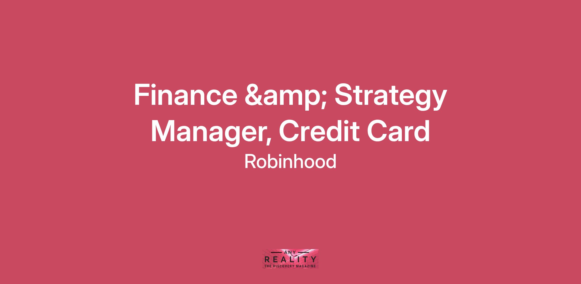 We're looking for a highly skilled professional with strong expertise with credit card financial modeling, budgeting/forecasting, coupled with a strong background collaborating with cross-functional team members. The ideal candidate has experience influencing business leaders and supporting strategic decision-making in a fast-paced environment. With regular interaction with senior leadership at Robinhood, this role demands outstanding communication skills to effectively convey insights and drive strategic alignment.