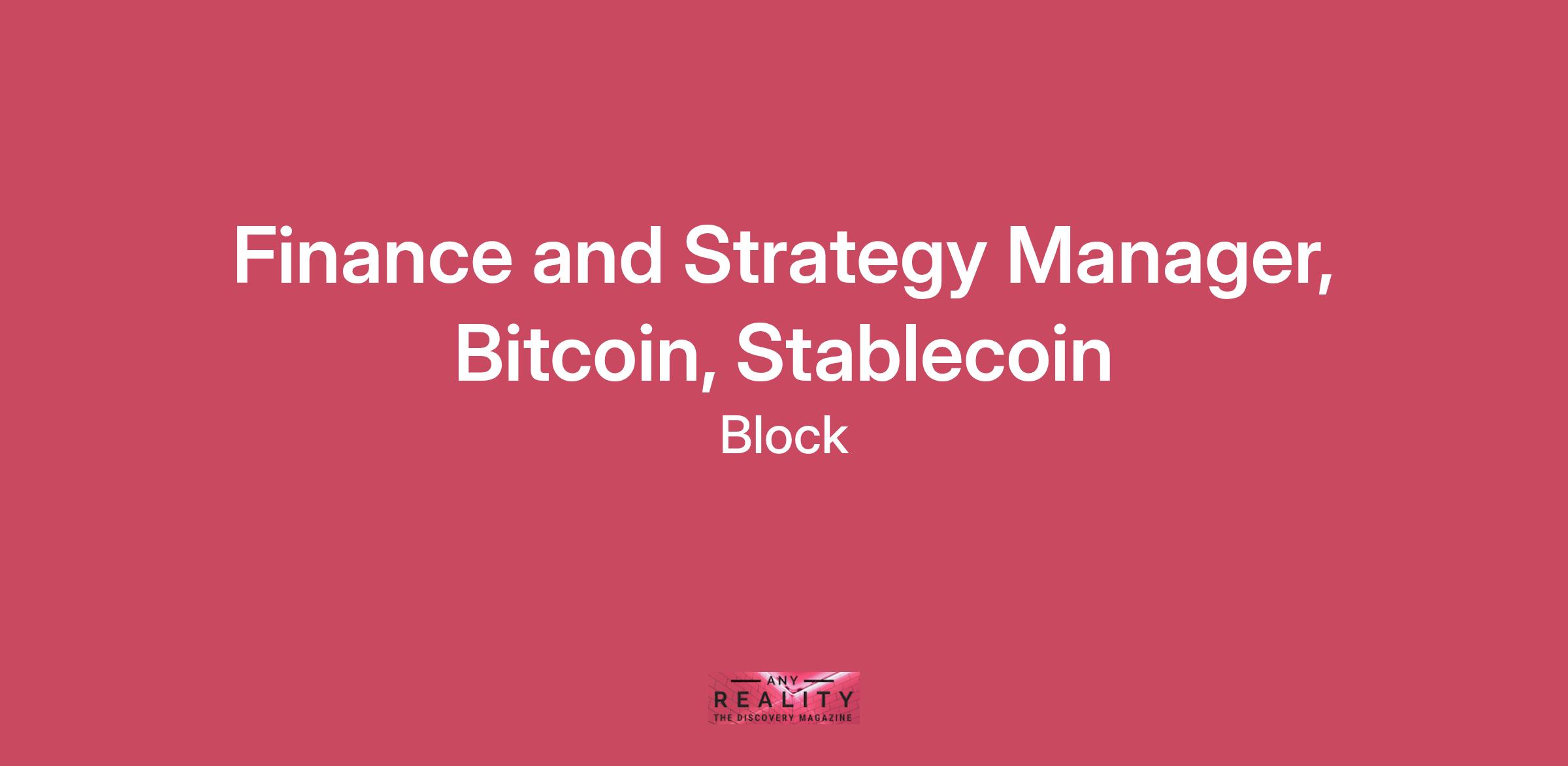 We are seeking a Finance & Strategy Manager to join Block and help scale our Bitcoin and stablecoin initiatives. In this role, you will be at the forefront of Bitcoin and stablecoin innovation, partnering with product, engineering, and business teams to develop financial models, analyze market opportunities, and shape strategic decisions that impact our digital asset ecosystem. This is a hands-on, high-impact role: you will build financial frameworks, size opportunities, evaluate product economics, and partner with product and engineering leads to shape Block’s Bitcoin and stablecoin roadmap. The ideal candidate brings a foundation in traditional finance (investment banking, investing, or strategy), fluency in digital assets, and the ability to navigate fast-moving, ambiguous environments. You will report to the Bitcoin Finance and Strategy Lead that supports Block's Bitcoin and Stablecoin products