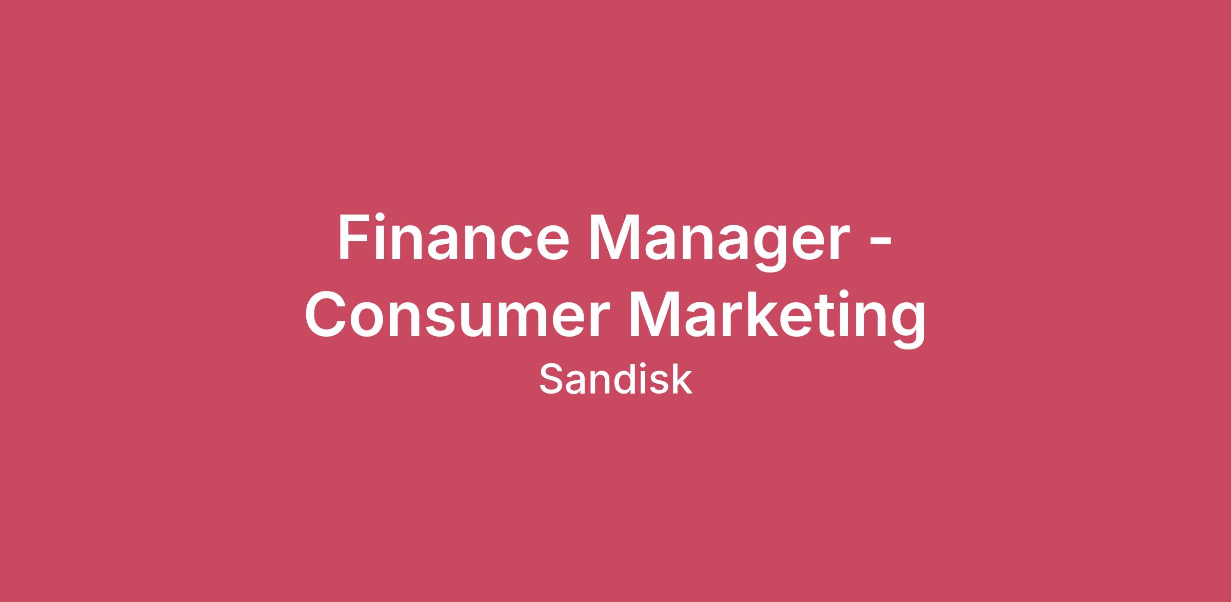 Company DescriptionSandisk understands how people and businesses consume data and we relentlessly innovate to deliver solutions that enable today’s needs and tomorrow’s next big ideas. With a rich history of groundbreaking innovations in Flash and advanced memory technologies, our solutions have become the beating heart of the digital world we’re living in and that we have the power to shape.Sandisk meets people and businesses at the intersection of their aspirations and the moment, enabling them to keep moving and pushing possibility forward. We do this through the balance of our powerhouse manufacturing capabilities and our industry-leading portfolio of products that are recognized globally for innovation, performance and quality.Sandisk has two facilities recognized by the World Economic Forum as part of the Global Lighthouse Network for advanced 4IR innovations. These facilities were also recognized as Sustainability Lighthouses for breakthroughs in efficient operations. With our global reach, we ensure the global supply chain has access to the Flash memory it needs to keep our world moving forward.Job DescriptionManager, Marketing Finance The Finance Manager - Consumer Marketing is an experienced individual contributor responsible for leading complex financial planning, forecasting, and analytical activities in support of key business objectives for the Consumer business. This role exercises sound judgment in ambiguous situations, and influences decision-making through data-driven insights and strong business partnership.The role is expected to independently own major planning processes, develop financial frameworks, and provide strategic and operational finance support to senior business stakeholders. While this position does not have direct people management responsibility, it is expected to provide functional leadership, and guidance to cross-functional partners.ESSENTIAL DUTIES AND RESPONSIBILITIES:Partner with business leaders as a trusted finance advisor, providing financial insights to support marketing campaigns, strategic initiatives, pricing decisions, and investment trade-offsOwn end-to-end financial planning and forecasting for assigned business areas, including annual operating plans, quarterly outlooks, and long-range plansDevelop, maintain, and enhance revenue, margin, and ROI models, incorporating key business drivers and scenario analysisDrive preparation of executive-level financial reviews, including dashboards, KPIs, and management reporting with clear financial narrativesLead analysis of month-end and quarter-end results, ensuring accuracy, insight, and alignment with internal controls and reporting standardsPerform in-depth variance analysis to identify trends, risks, and opportunities, and communicate root causes and implications to senior leadershipIdentify, design, and implement process, control, and tools improvements to enhance forecasting accuracy, efficiency, and scalabilityLead or play a key role in cross-functional initiatives and special projects, including financial systems implementations and business process enhancementsPrepare complex ad hoc analyses to support senior management decision-making and time-sensitive business needsQualificationsREQUIRED:Bachelor’s degree in Finance, Accounting, Economics, or a related field5–7+ years of progressive finance experience, with demonstrated growth in scope and complexity; FP&A experience requiredAdvanced proficiency in Microsoft Excel, including complex financial modeling and scenario analysisStrong working knowledge of financial planning, forecasting, variance analysis, and performance managementProven ability to independently manage complex deliverables and multiple priorities with minimal supervisionDemonstrated experience translating complex financial data into clear, concise insights for senior and executive-level audiencesStrong written and verbal communication skills, including the ability to influence without authorityTrack record of process improvement, control enhancement, and analytical rigorHigh attention to detail combined with the ability to operate at a strategic levelPREFERRED:MBA, CPA, or equivalent advanced finance credentialExperience supporting revenue, pricing, margin, or GTM-focused organizationsFamiliarity with enterprise financial systems and planning tools (e.g., SAP, Hyperion, Anaplan, or similar)Experience in semiconductor, storage, consumer electronics, or technology manufacturing environmentsAdditional InformationSandisk is committed to providing equal opportunities to all applicants and employees and will not discriminate against any applicant or employee based on their race, color, ancestry, religion (including religious dress and grooming standards), sex (including pregnancy, childbirth or related medical conditions, breastfeeding or related medical conditions), gender (including a person’s gender identity, gender expression, and gender-related appearance and behavior, whether or not stereotypically associated with the person’s assigned sex at birth), age, national origin, sexual orientation, medical condition, marital status (including domestic partnership status), physical disability, mental disability, medical condition, genetic information, protected medical and family care leave, Civil Air Patrol status, military and veteran status, or other legally protected characteristics. We also prohibit harassment of any individual on any of the characteristics listed above. Our non-discrimination policy applies to all aspects of employment. We comply with the laws and regulations set forth in the "Know Your Rights: Workplace Discrimination is Illegal” poster. Our pay transparency policy is available here.Sandisk thrives on the power and potential of diversity. As a global company, we believe the most effective way to embrace the diversity of our customers and communities is to mirror it from within. We believe the fusion of various perspectives results in the best