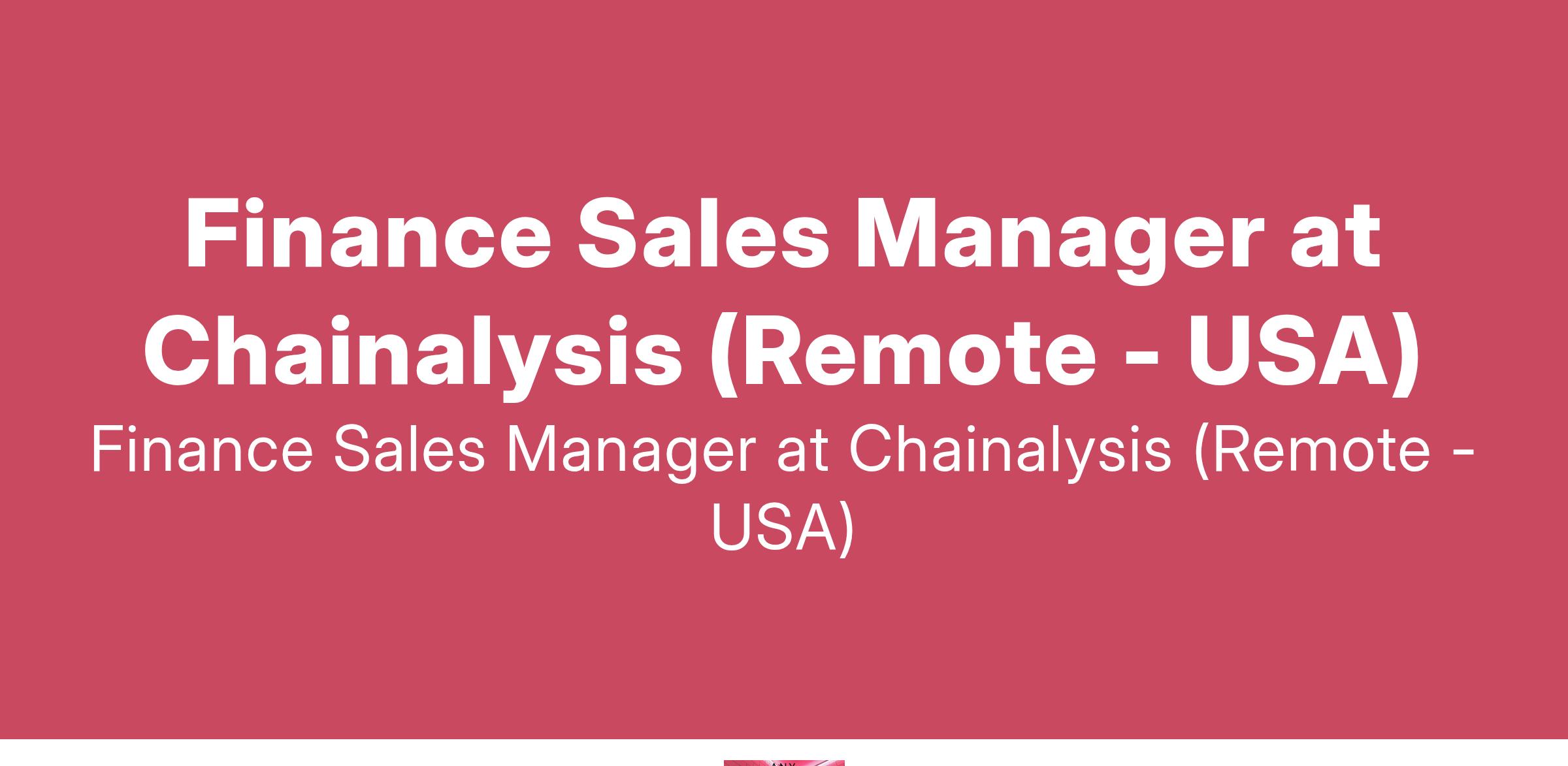Finance Sales Manager at Chainalysis (Remote - USA)