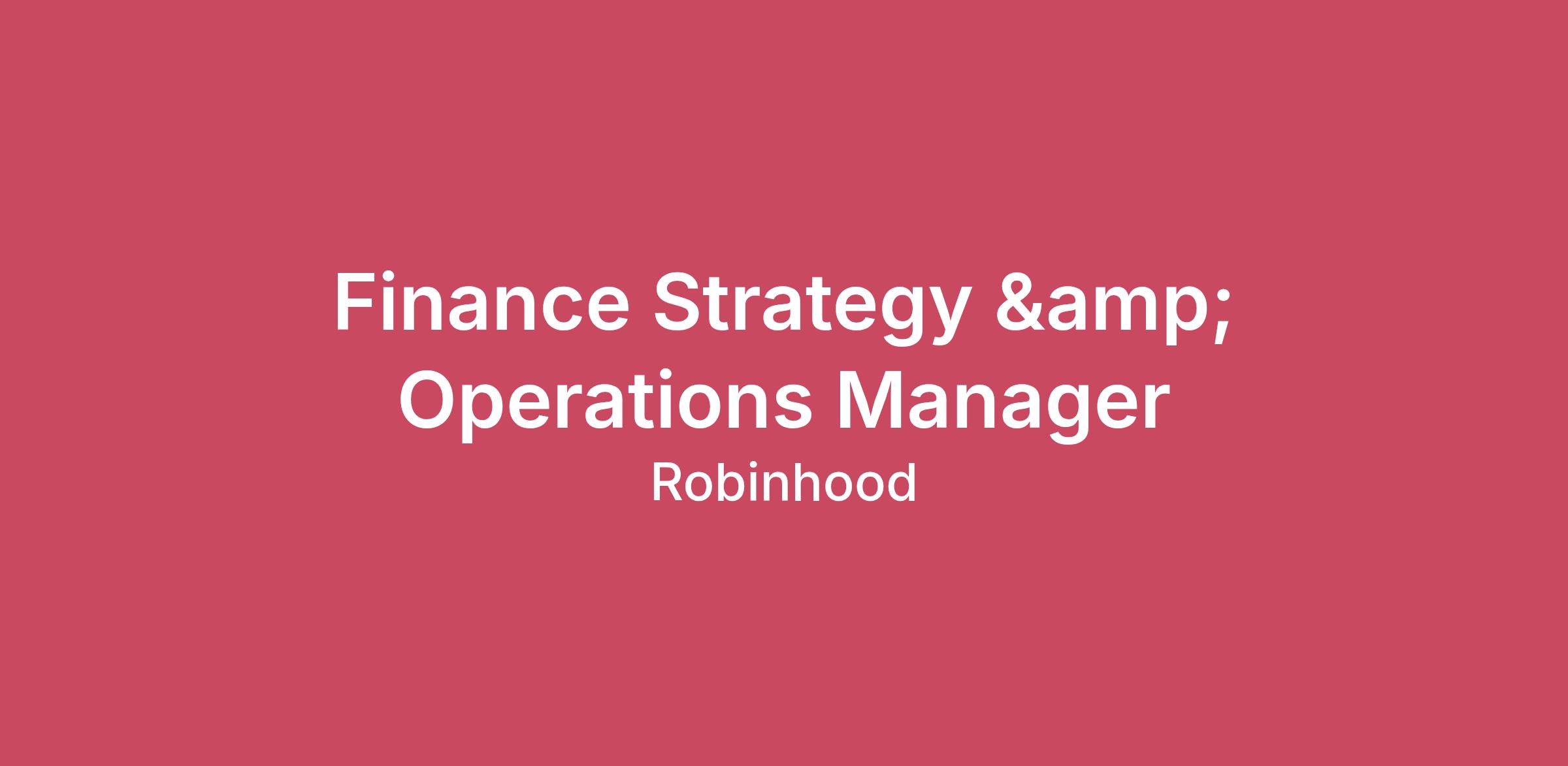 As a Finance Strategy & Operations Manager, you will support Robinhood’s company-wide annual planning process, goal tracking, and high-priority initiatives that improve how the company allocates resources and measures performance. You will report to the VP of Finance & Strategy and partner closely with the Finance Chief of Staff and Head of Annual Planning. This role blends financial analysis with structured process design and program execution to ensure company planning cycles run efficiently and produce high-quality outputs. You will build tools, frameworks, and reporting that enable leaders to make clear, timely decisions based on reliable financial and operational data.