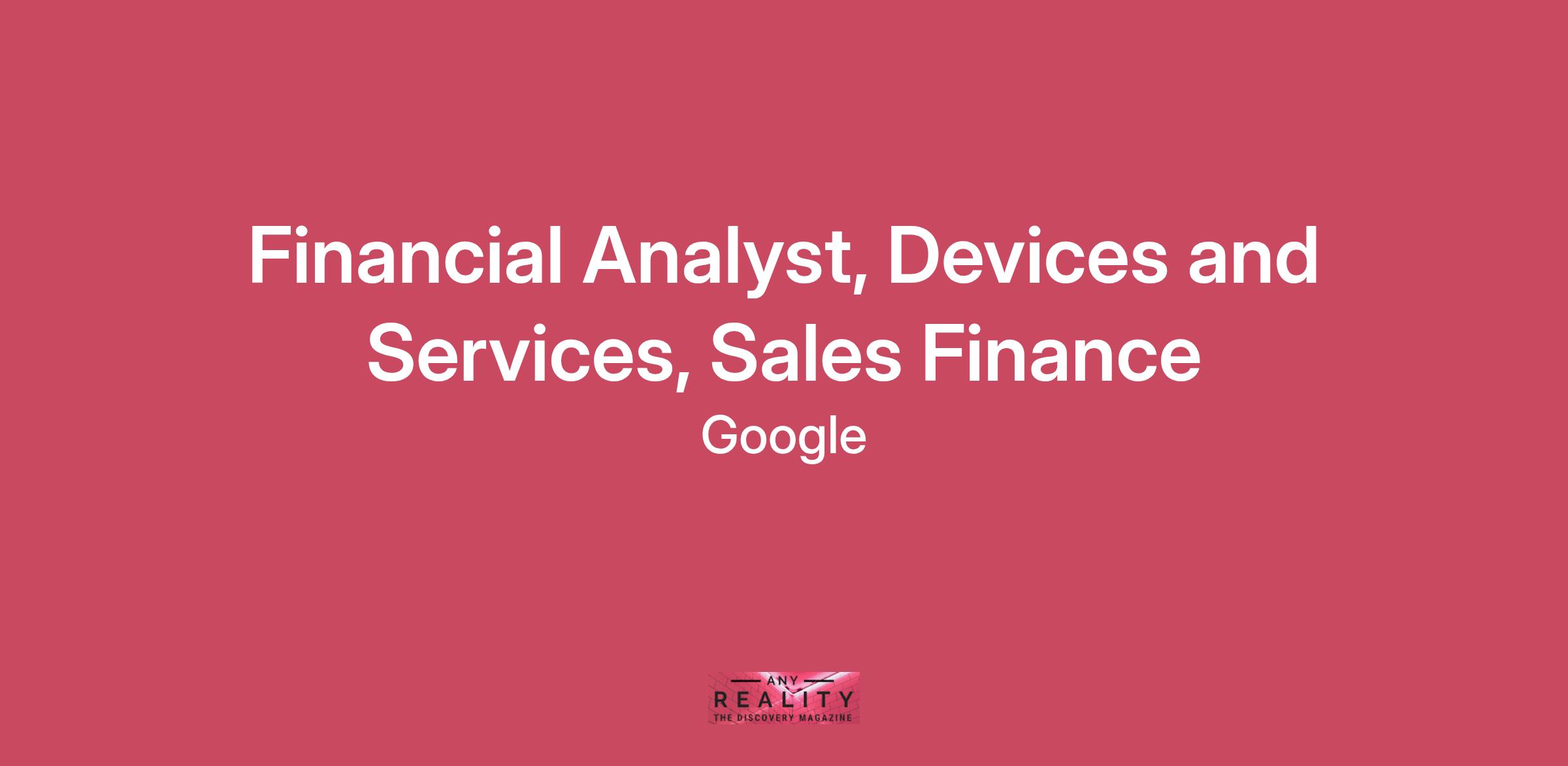 As a Finance Analyst, you will join our Devices and Services Sales Finance team. Devices and Services is a very dynamic area with an exciting portfolio of products from phones to home and health. You will have interest and passion for consumer electronics to participate in shaping the future of the organization. As part of this role, you will partner with Sales Americas VP and Leadership team, developing a unique perspective on Google’s emerging product businesses and Go-To-Market strategies for Pixel business.