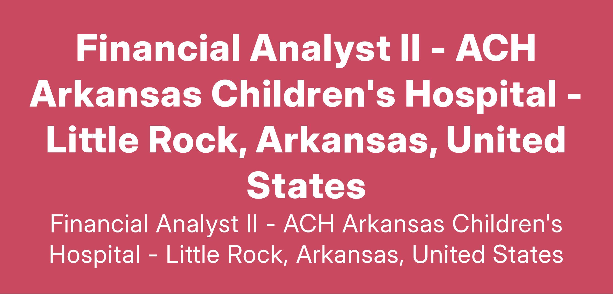 ARKANSAS CHILDREN'S IS A TOBACCO FREE WORKPLACE. FLU VACCINES ARE REQUIRED. ARKANSAS CHILDREN'S IS AN EQUAL OPPORTUNITY EMPLOYER. ALL QUALIFIED APPLICANTS WILL RECEIVE CONSIDERATION FOR EMPLOYMENT WITHOUT REGARD TO RACE, COLOR, RELIGION, SEX, SEXUAL ORIENTATION, GENDER IDENTITY OR EXPRESSION, NATIONAL ORIGIN, AGE, DISABILITY, PROTECTED VETERAN STATUS OR ANY OTHER CHARACTERISTIC PROTECTED BY FEDERAL, STATE, OR LOCAL LAWS.