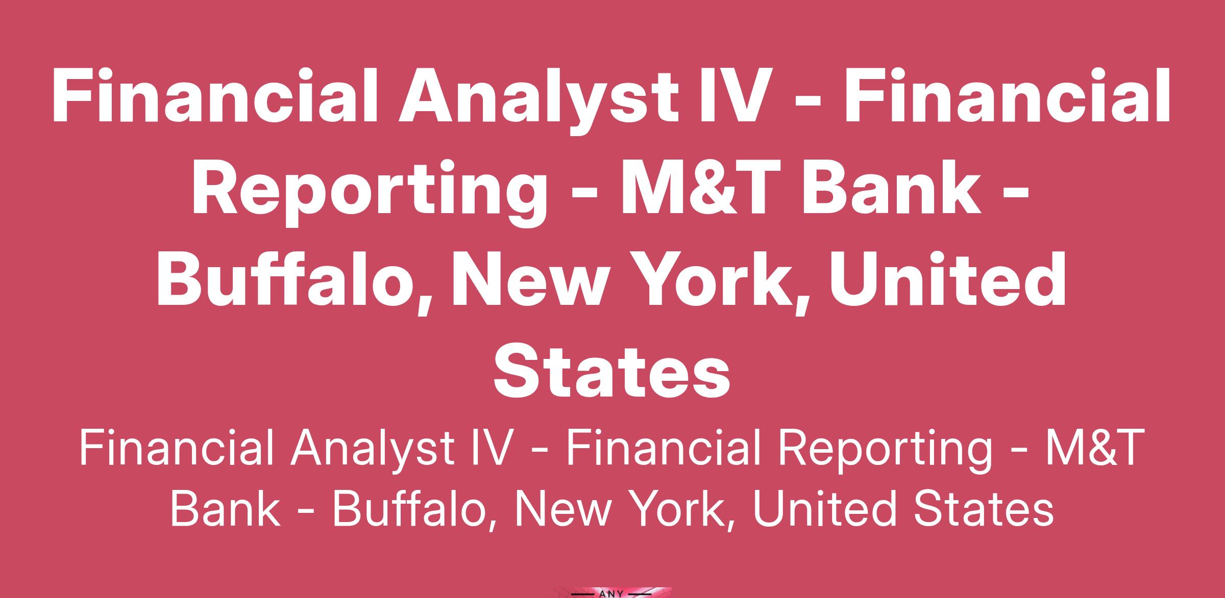- Display an expert-level understanding of M&T's (or applicable Business Unit within) financial statements; including awareness of key drivers/trends in major Balance Sheet and Income Statement line items