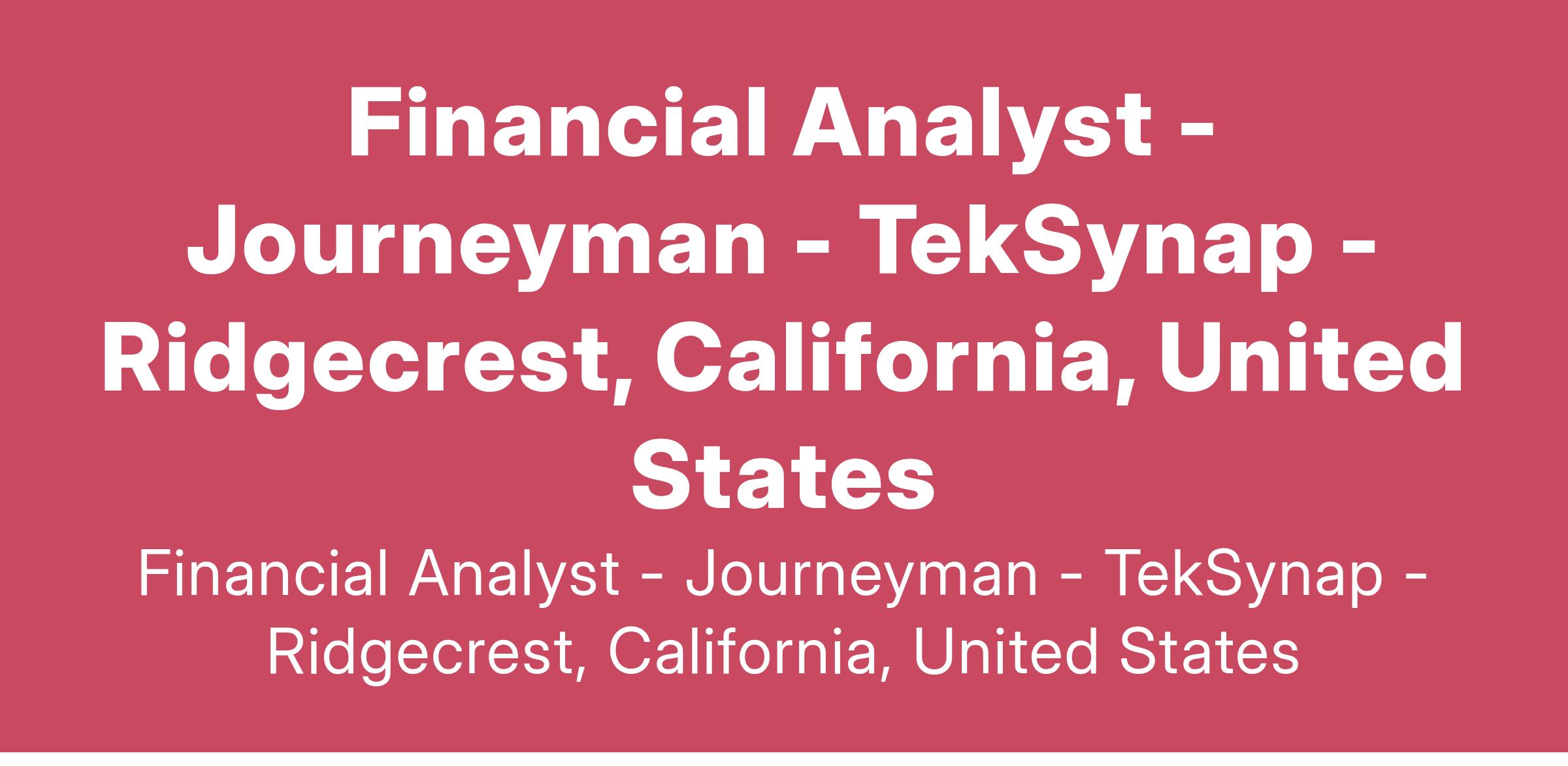 We are seeking a Financial Analyst, Journeyman to join our team in Ridgcrest, CA.