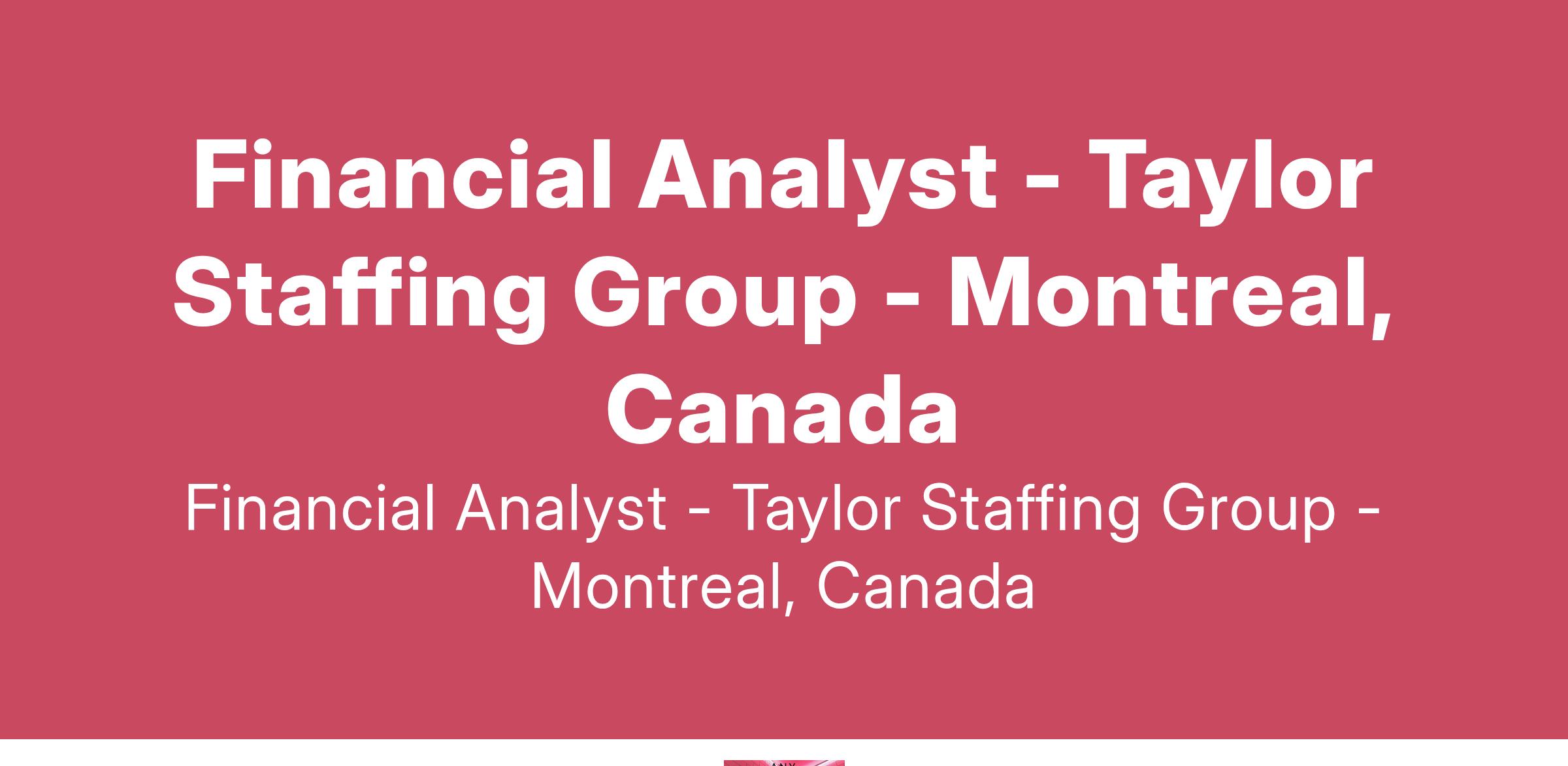 Taylor group is looking to hire a passionate Junior Financial Analyst . The Jr. Financial Analyst will be reporting to the Controller and will be responsible for supporting the other office Analysts.