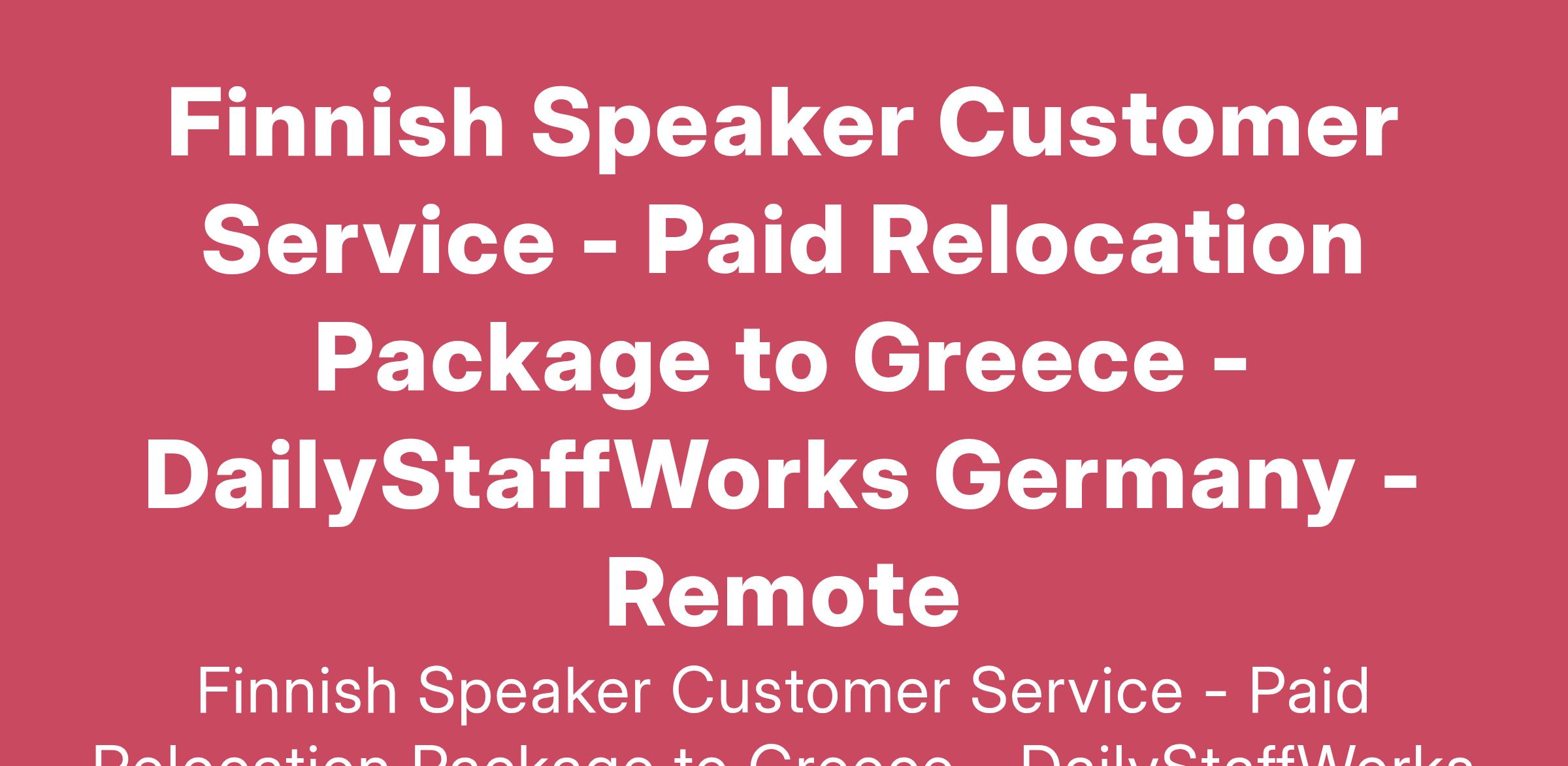 Finnish-Speaking Customer Support Role for an international company – Live and Work from Beautiful Greece!