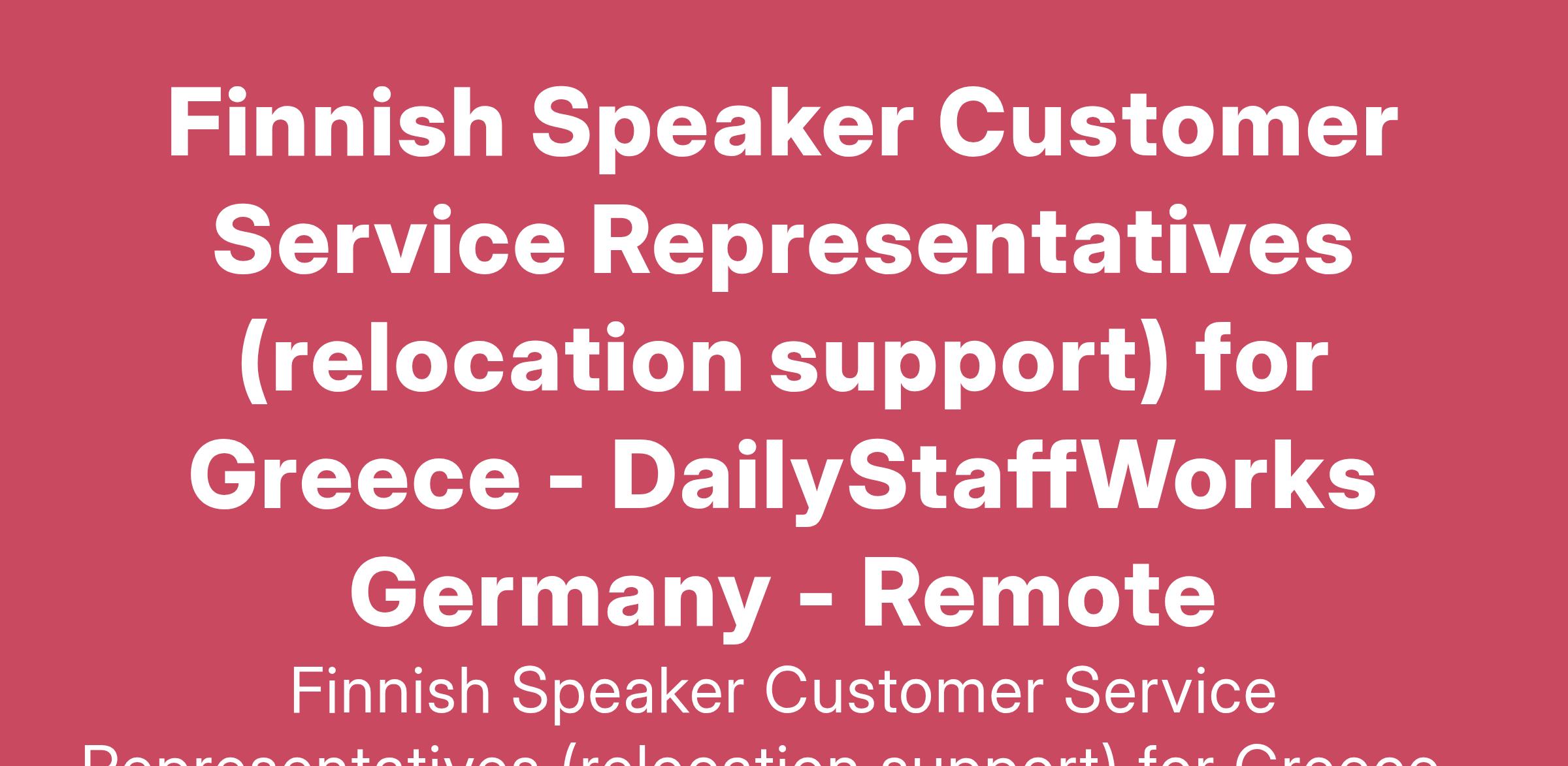 Finnish Speaker Customer Service Representatives (relocation support) for Greece - DailyStaffWorks Germany - Remote