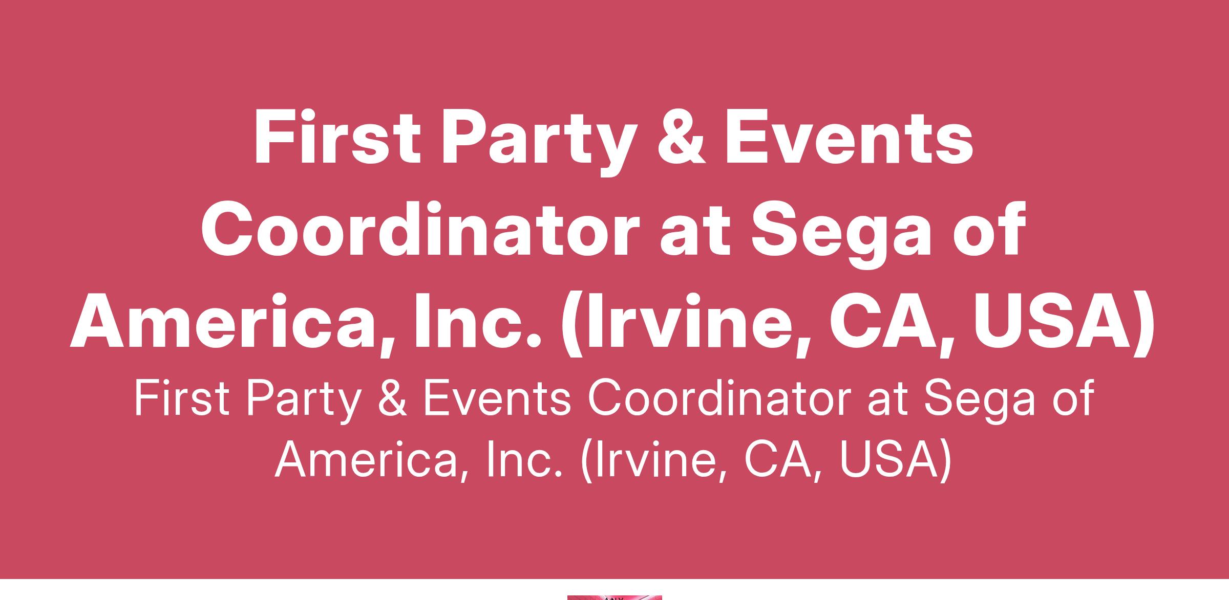 First Party & Events Coordinator at Sega of America, Inc. (Irvine, CA, USA)