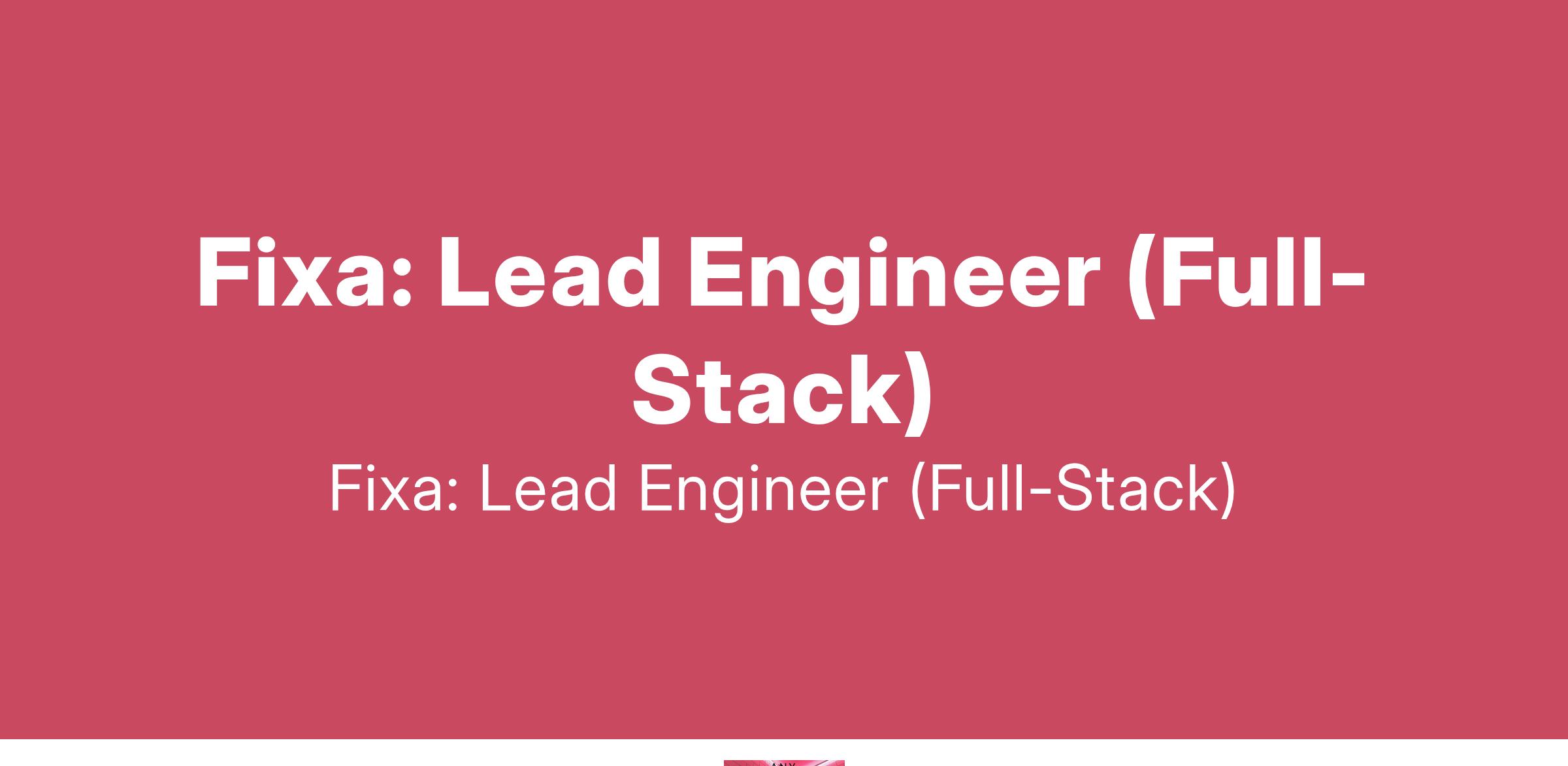 To apply: https://weworkremotely.com/remote-jobs/fixa-lead-engineer-full-stack