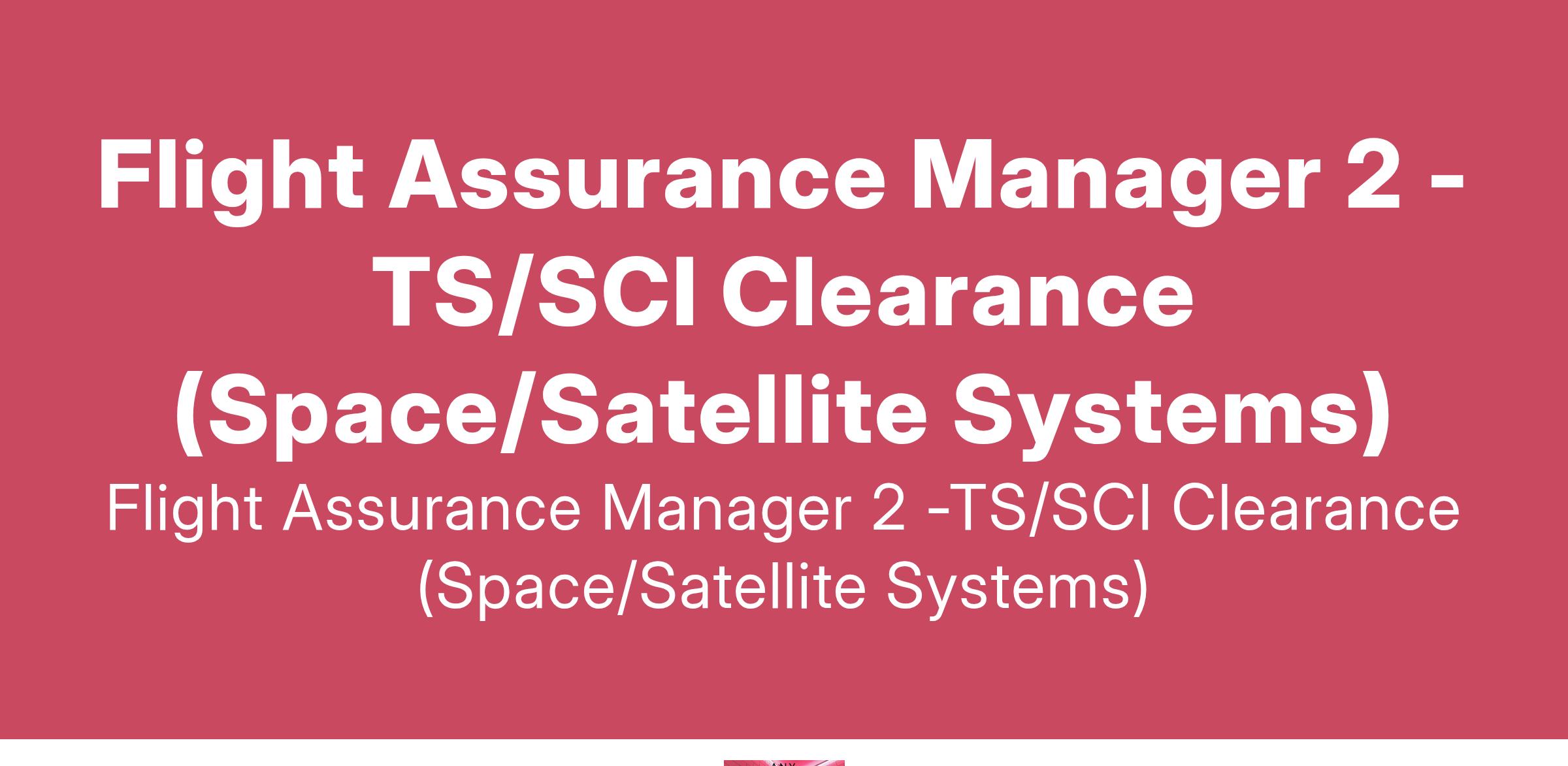 Flight Assurance Manager 2 -TS/SCI Clearance (Space/Satellite Systems)