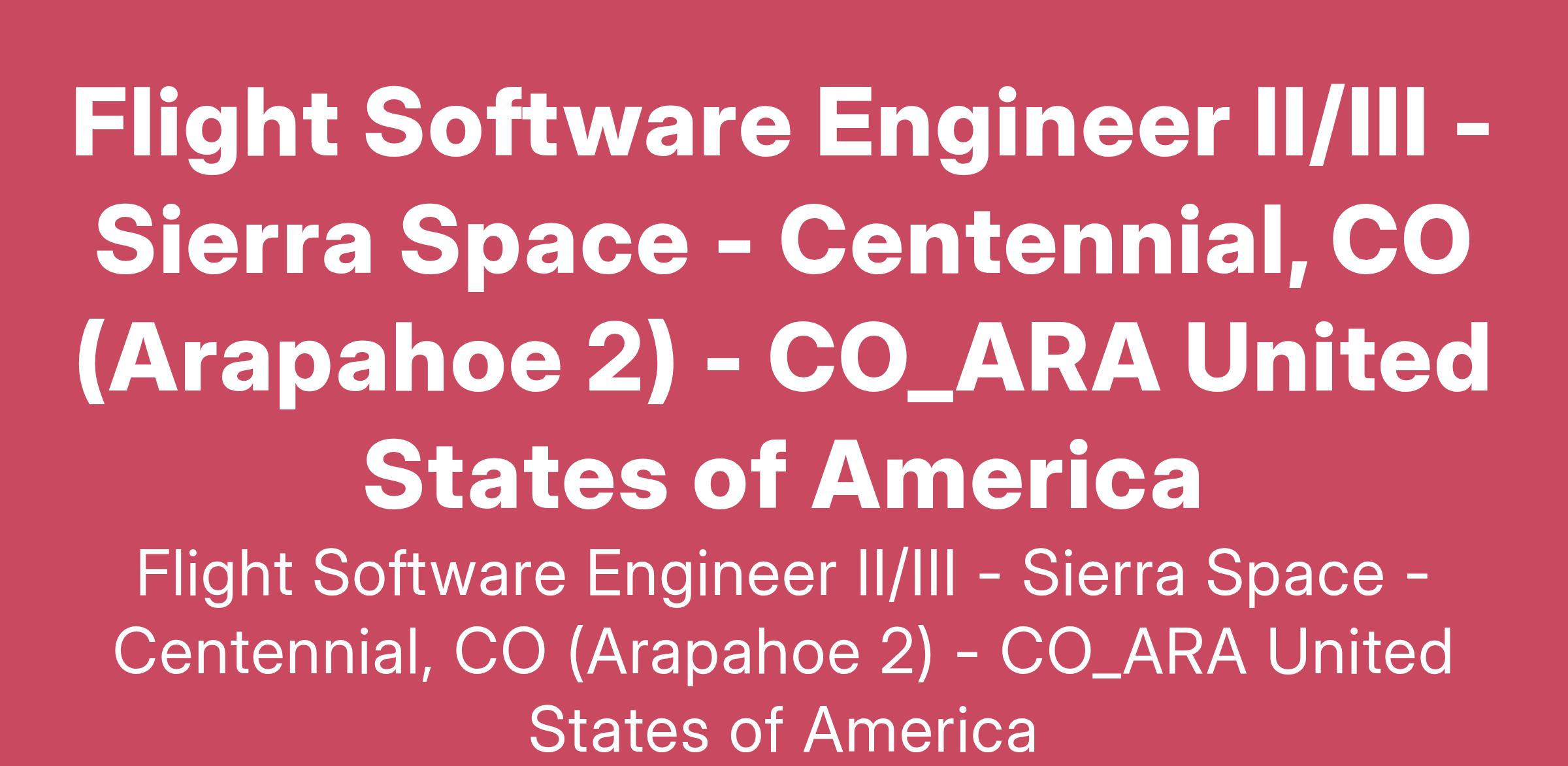 Sierra Space Corporation is an equal opportunity employer and is committed to working with and providing reasonable accommodations to applicants with disabilities. If you need special assistance or a reasonable accommodation related to applying for employment with Sierra Space or at any stage of the recruitment process, please contact us.