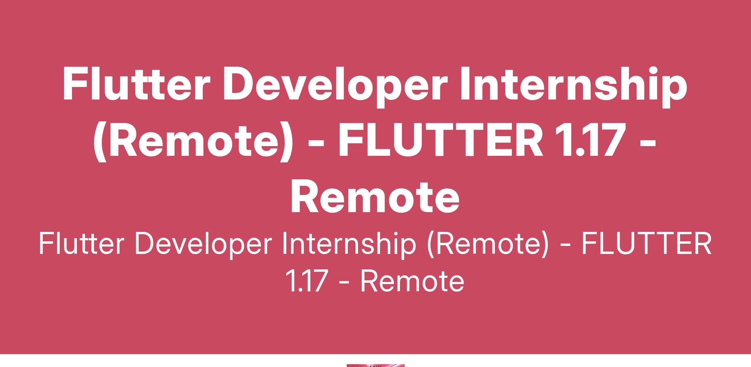 Flutter Developer Internship (Remote) - FLUTTER 1.17 - Remote