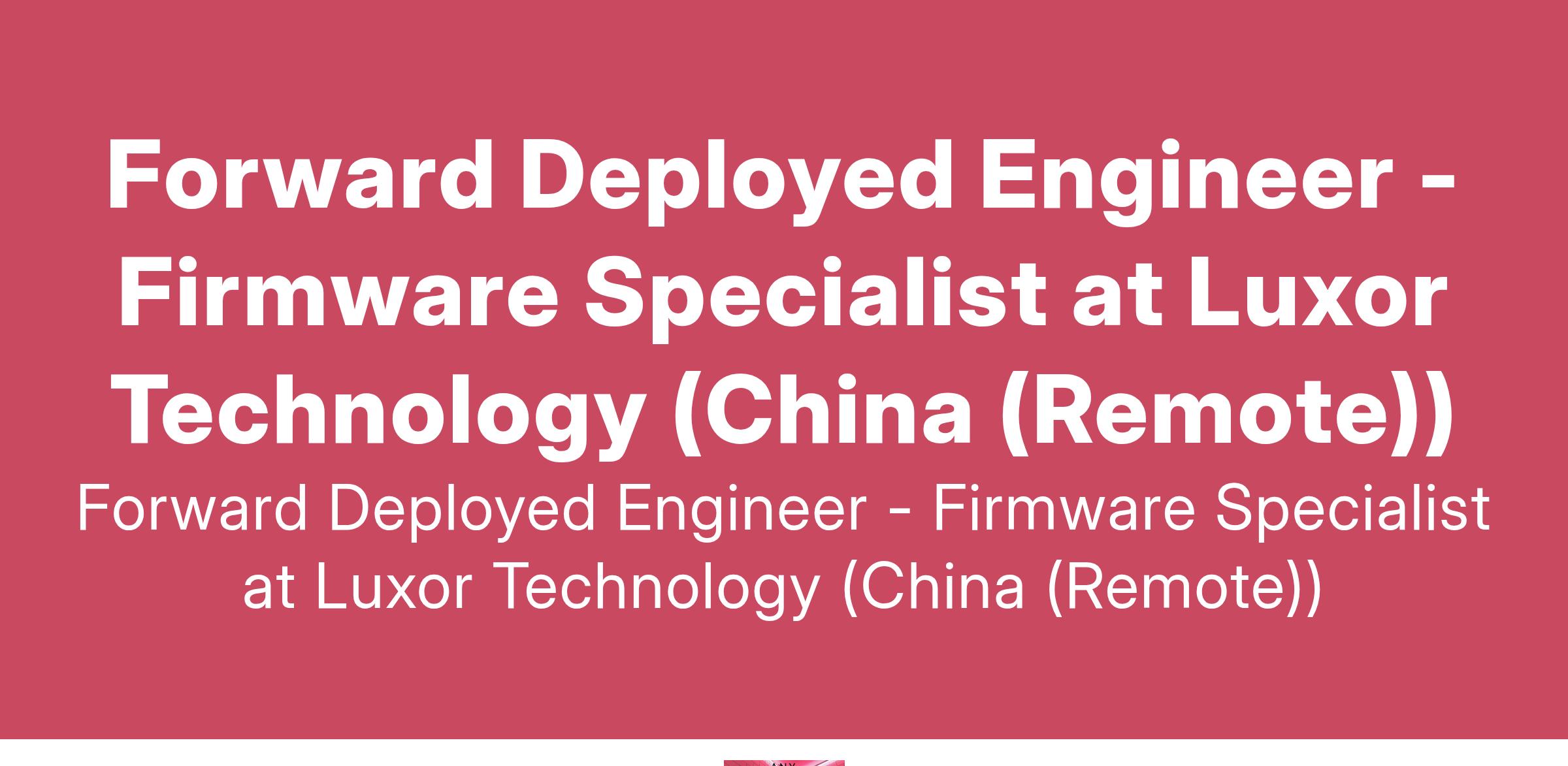 Forward Deployed Engineer - Firmware Specialist at Luxor Technology (China (Remote))