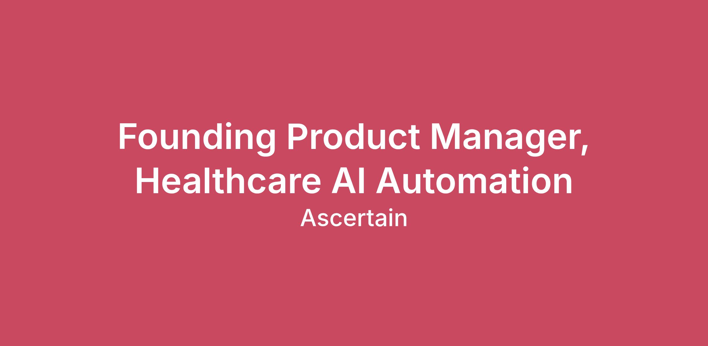 Founding Product Manager, Healthcare AI Automation
