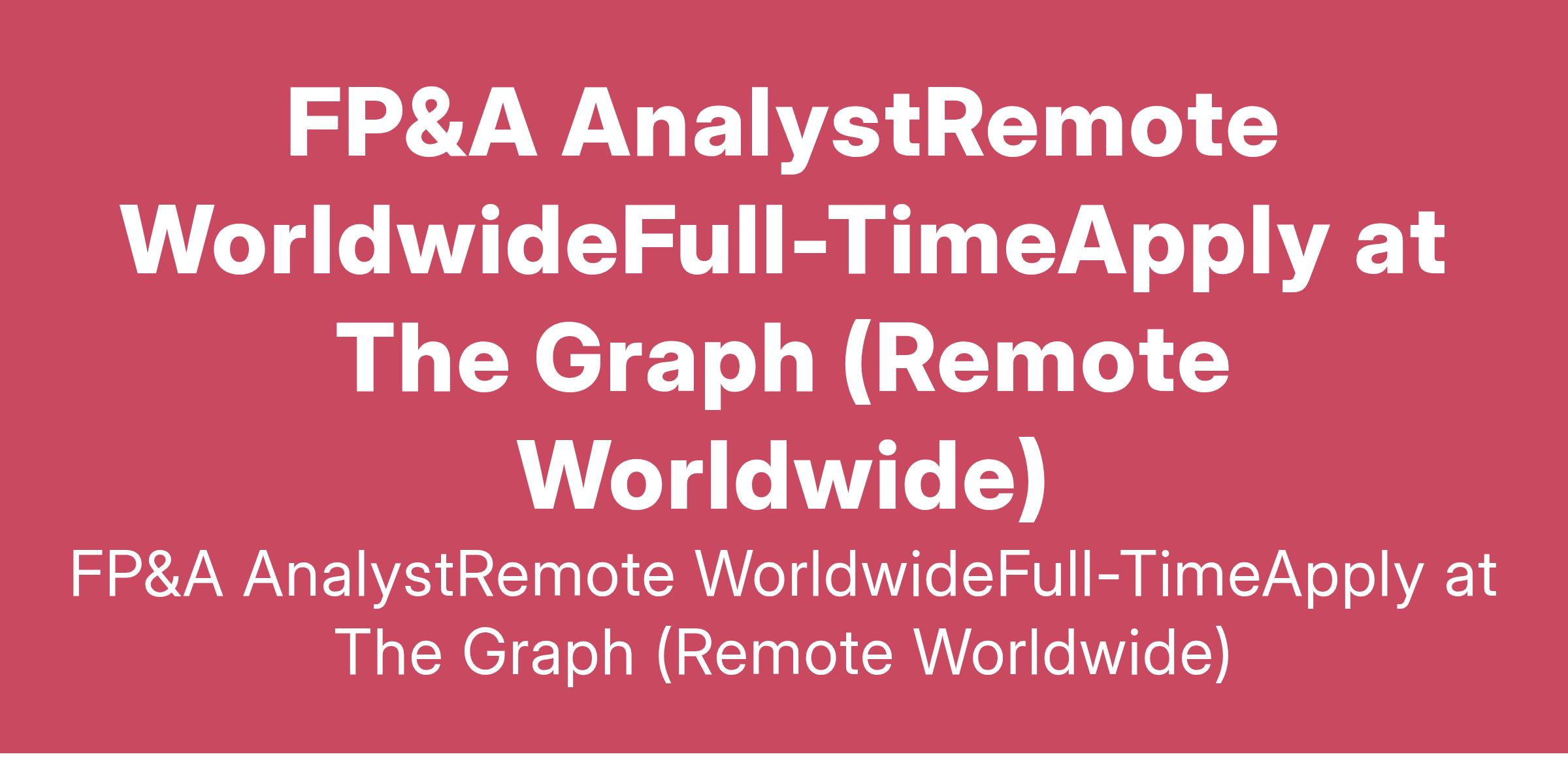 FP&A AnalystRemote WorldwideFull-TimeApply at The Graph (Remote Worldwide)