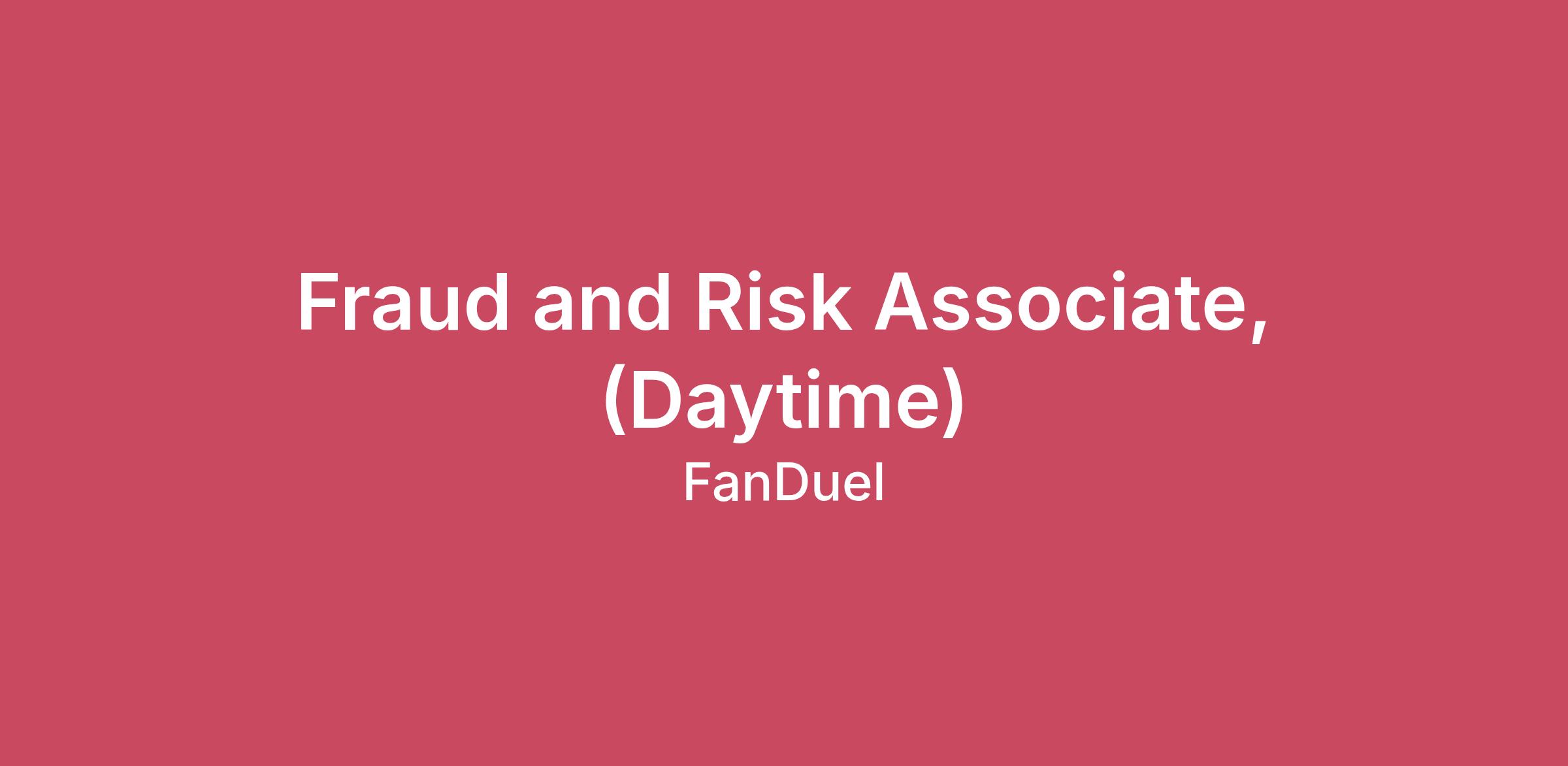Fraud and Risk Associate, (Daytime)