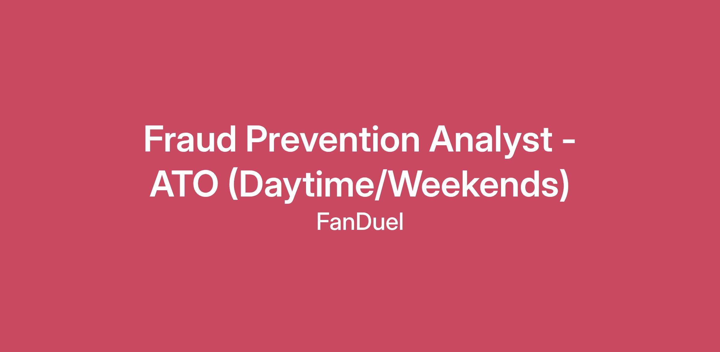 The Fraud and Risk Analyst – ATO role is responsible for analyzing and monitoring daily risk reporting to identify and prevent account takeovers across the FanDuel Group brands. This position plays a key role in assisting our organization with our fraud prevention response and is responsible for reviewing and resolving inbound and outbound customer fraud contacts across the platform.