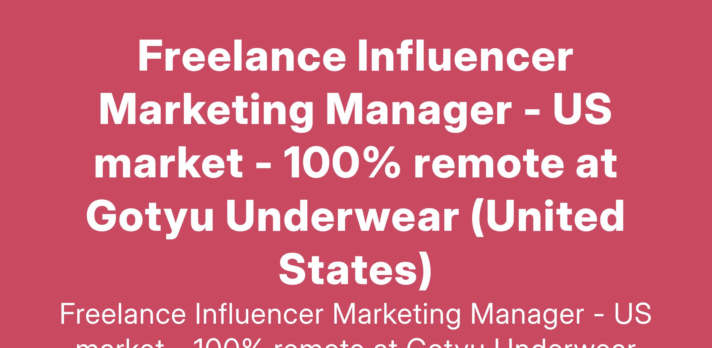 Freelance Influencer Marketing Manager - US market - 100% remote at Gotyu Underwear (United States)