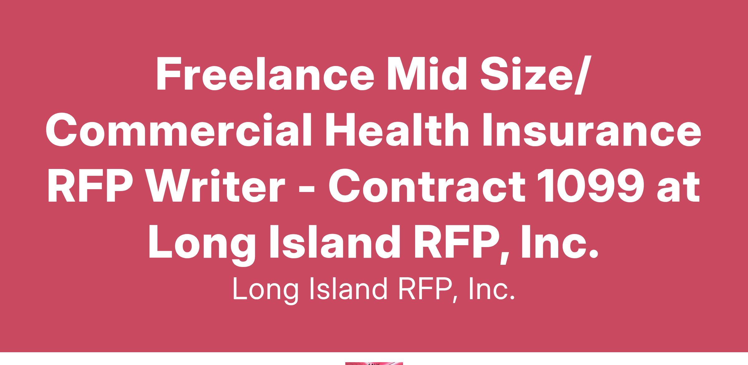 We are looking for remote freelance/1099 independent contractor Mid Size/ Commercial Health Insurance writers, located within the United States to help with developing high-quality proposal-ready narratives in response to commercial health insurance RFPs. Applications will not be considered if you do not have specific Mid Size/ Commercial Health Insurance RFP/ Proposal Writing experience.