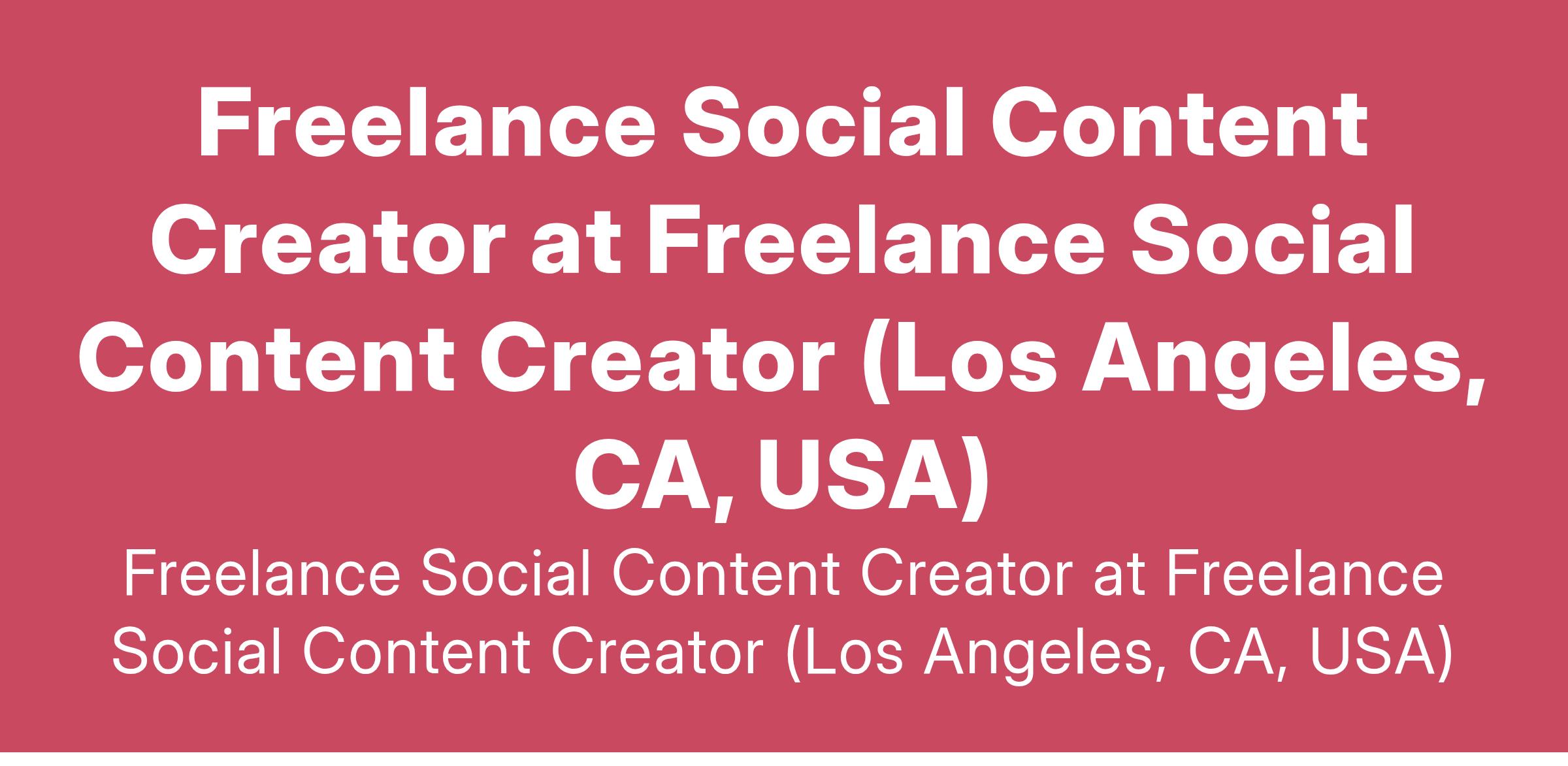 Freelance Social Content Creator at Freelance Social Content Creator (Los Angeles, CA, USA)