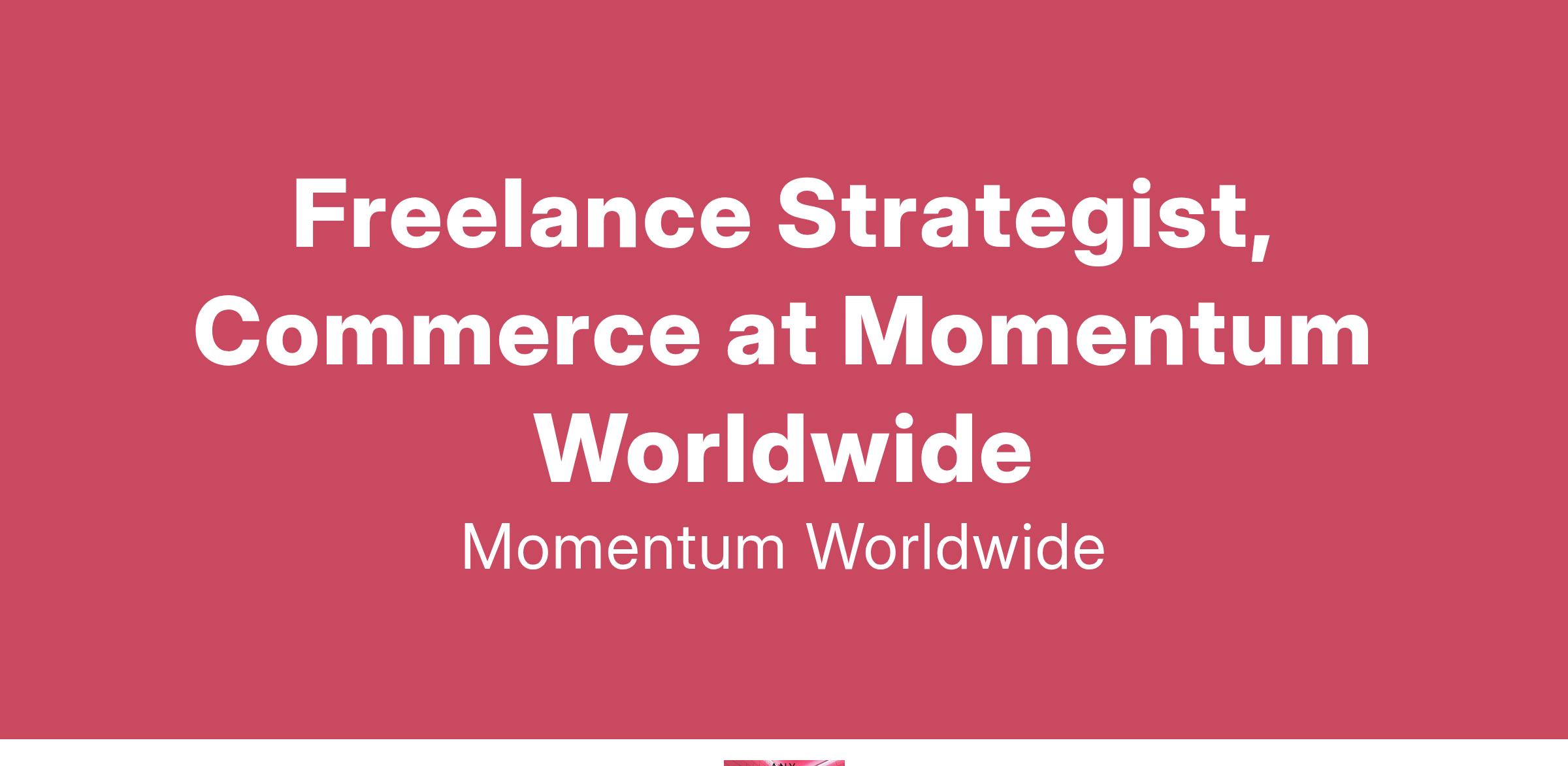You’ll partner with strategists, creatives, business leads, research, other commerce experts and other disciplines within Momentum’s network to ensure strategy is properly diffused through the work while delivering on our clients’ objectives.