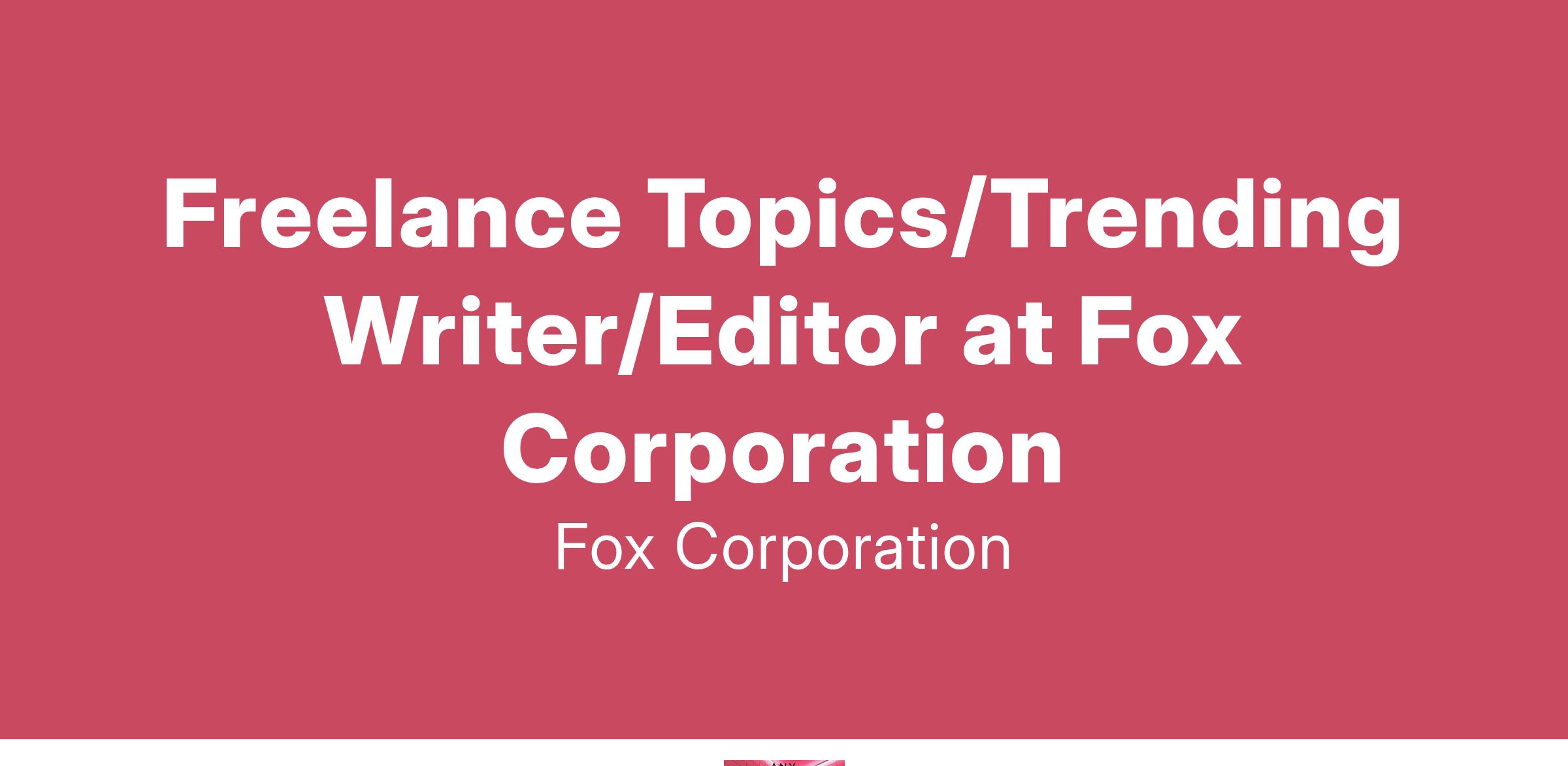 FOX Sports Digital is looking for a Freelance Topics/Trending Writer/Editor to join our editorial team. You love breaking news and trending topics, possess strong sports knowledge, and thrive in a fast-paced environment. You are versatile, able to assign, write and edit several stories cleanly and efficiently on a daily basis. You have strong news judgment while also understanding the sports, teams and stars that matter most to the FOX Sports audience.