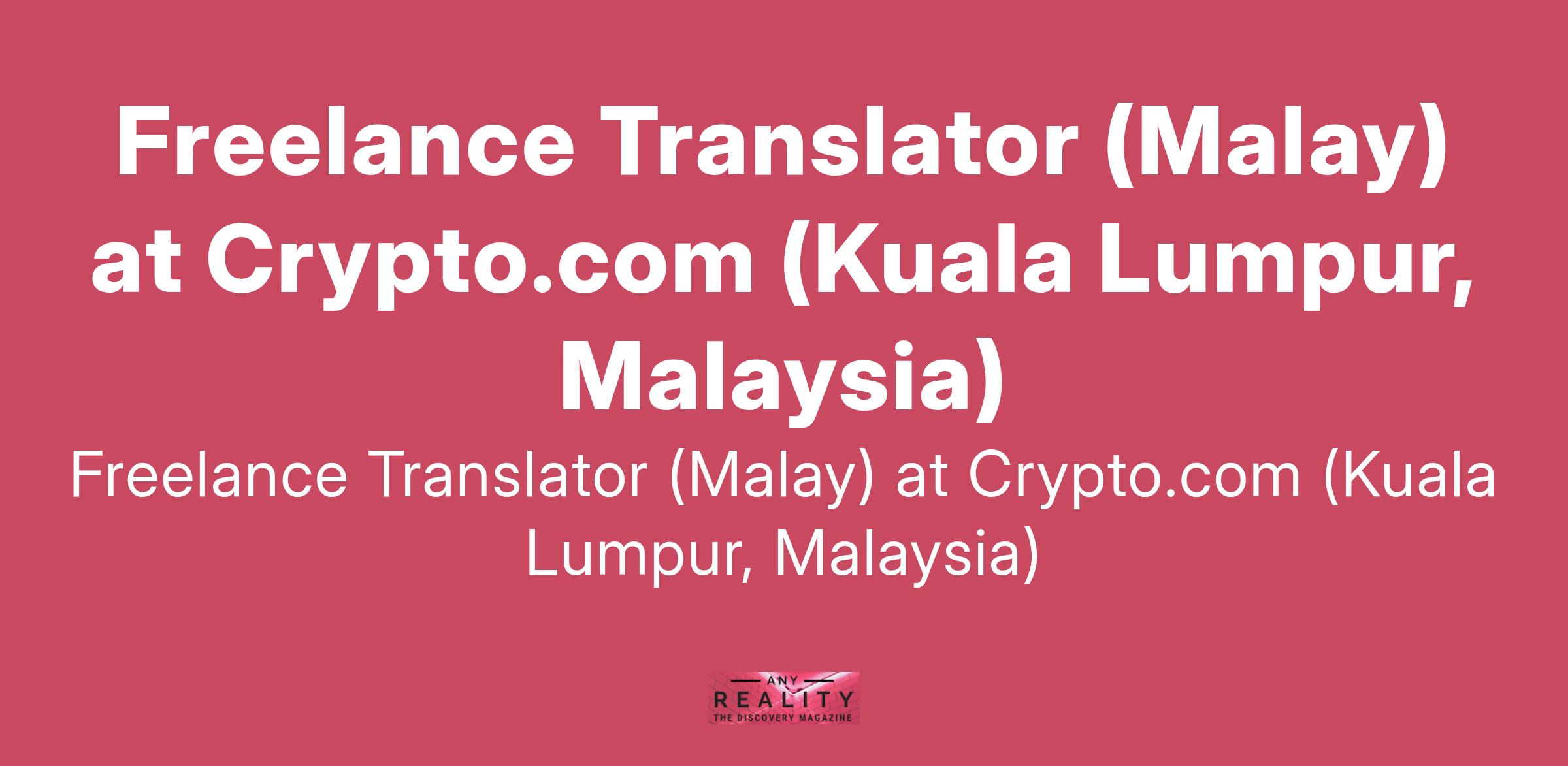 Freelance Translator (Malay) at Crypto.com (Kuala Lumpur, Malaysia)