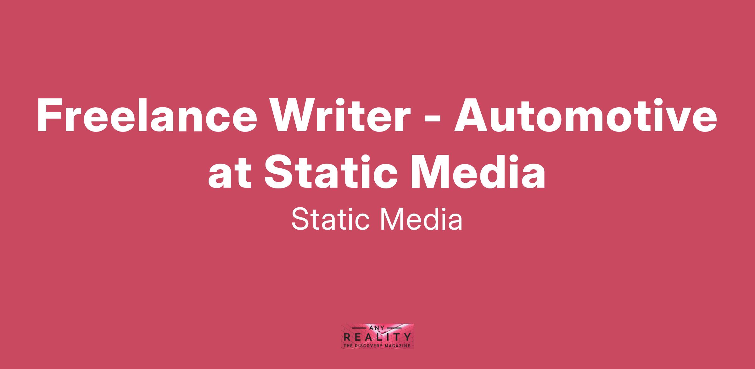 Steady freelance work that pays on time! Static Media is looking for freelance automotive writers to join our teams at and . We’re seeking candidates with a strong passion for the automotive industry, whether through hands-on experience, journalism, or deep personal knowledge.