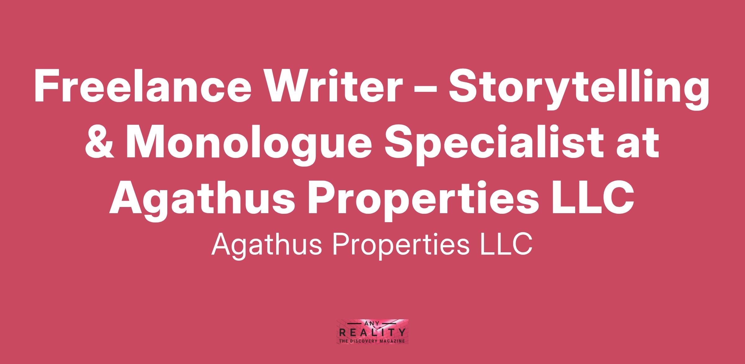 Agathus Studios is seeking a deeply intuitive freelance writer with a gift for crafting eloquent, thoughtful monologues and essays–someone who can capture and refine a distinct, personal voice with authenticity and emotional depth. This role would go beyond just writing; it requires someone who can listen, absorb, and translate personal experiences into meaningful narratives that feel intimate, authentic, relatable, and emotionally resonant. We are looking for a storyteller who can shape raw emotions into eloquent words, find meaning in everyday moments, and instinctively understands how to craft narratives that move people.